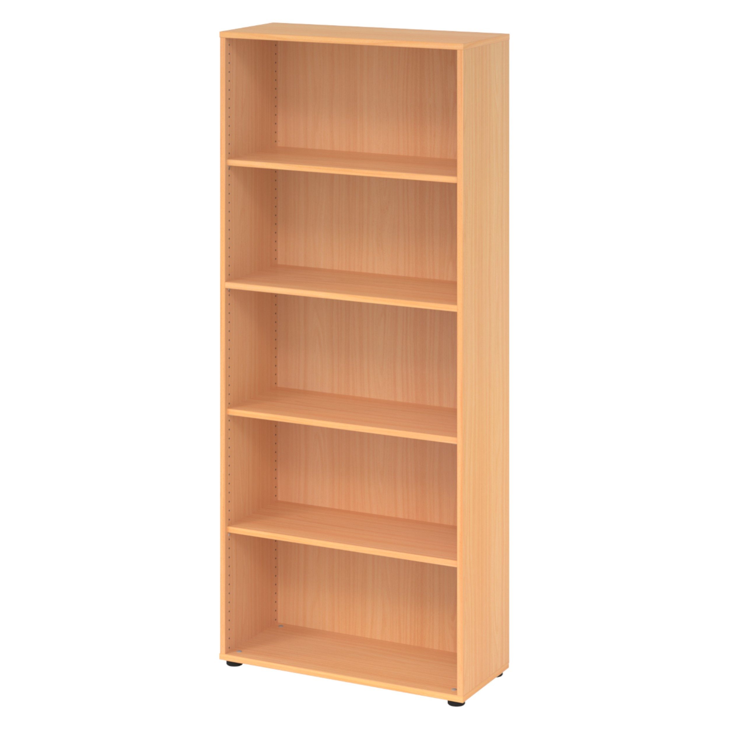 Das bümö basic Büroregal für 5 Ordnerhöhen bietet genügend Platz für Aktenordner und Stauraum für Material. Vier Einlegeböden werden mitgeliefert und können im Raster von 3,2 cm höhenverstellt werden. Das Regal ist offen und in 5 attraktiven Dekoren erhältlich. Über die Sockelfüße können Bodenunebenheiten von +/- 0,5cm ausgeglichen- und somit ein sicherer, kippelfreier Stand garantiert werden.