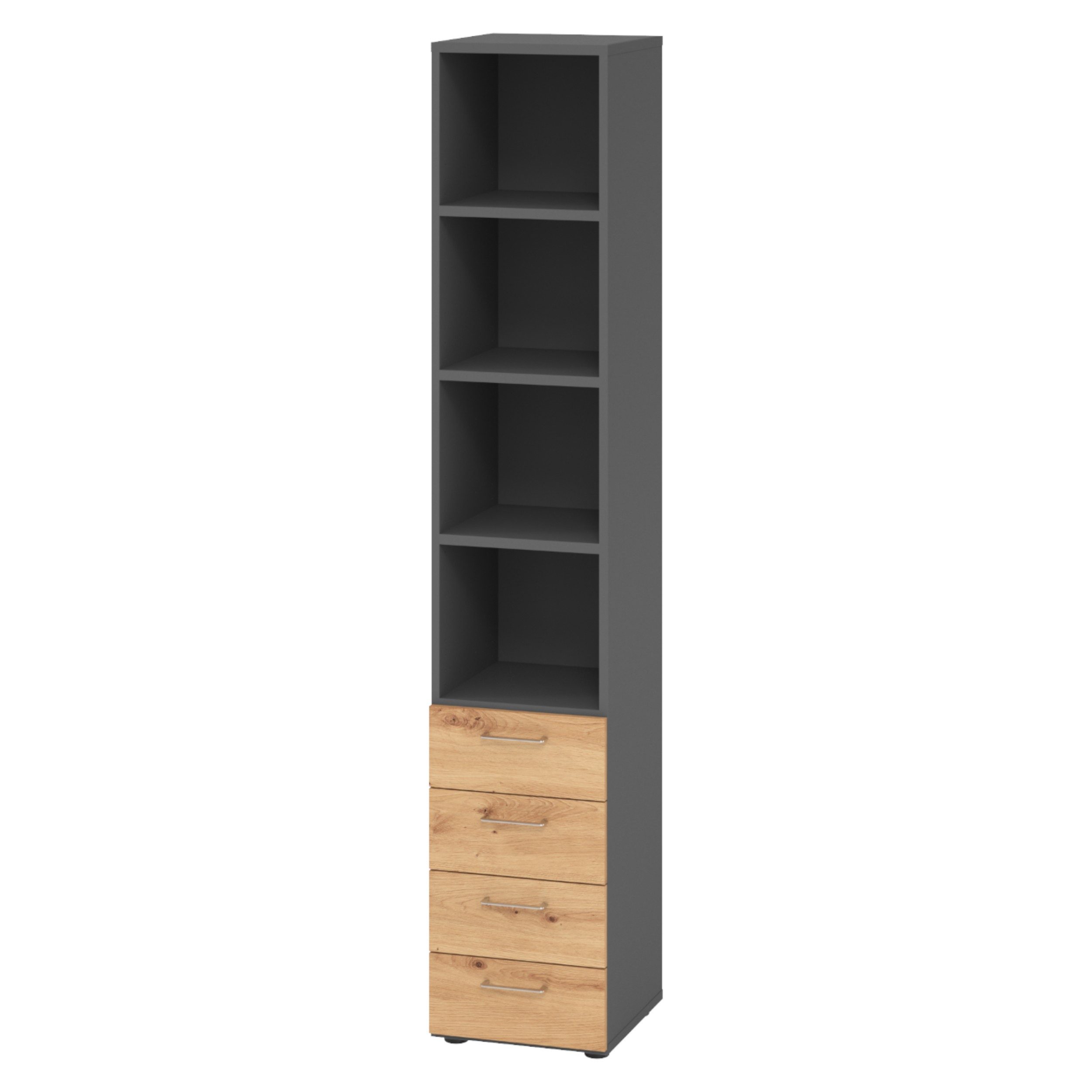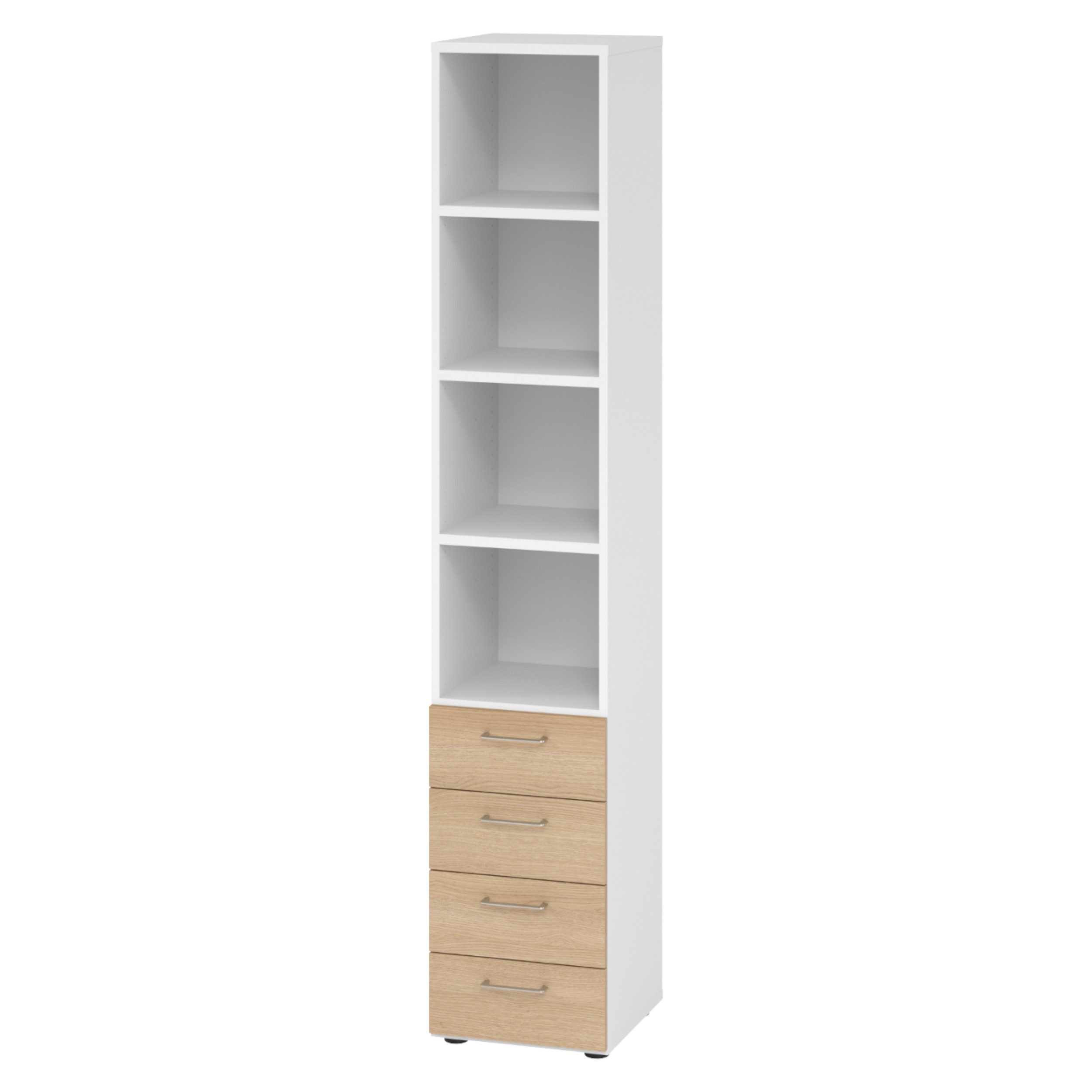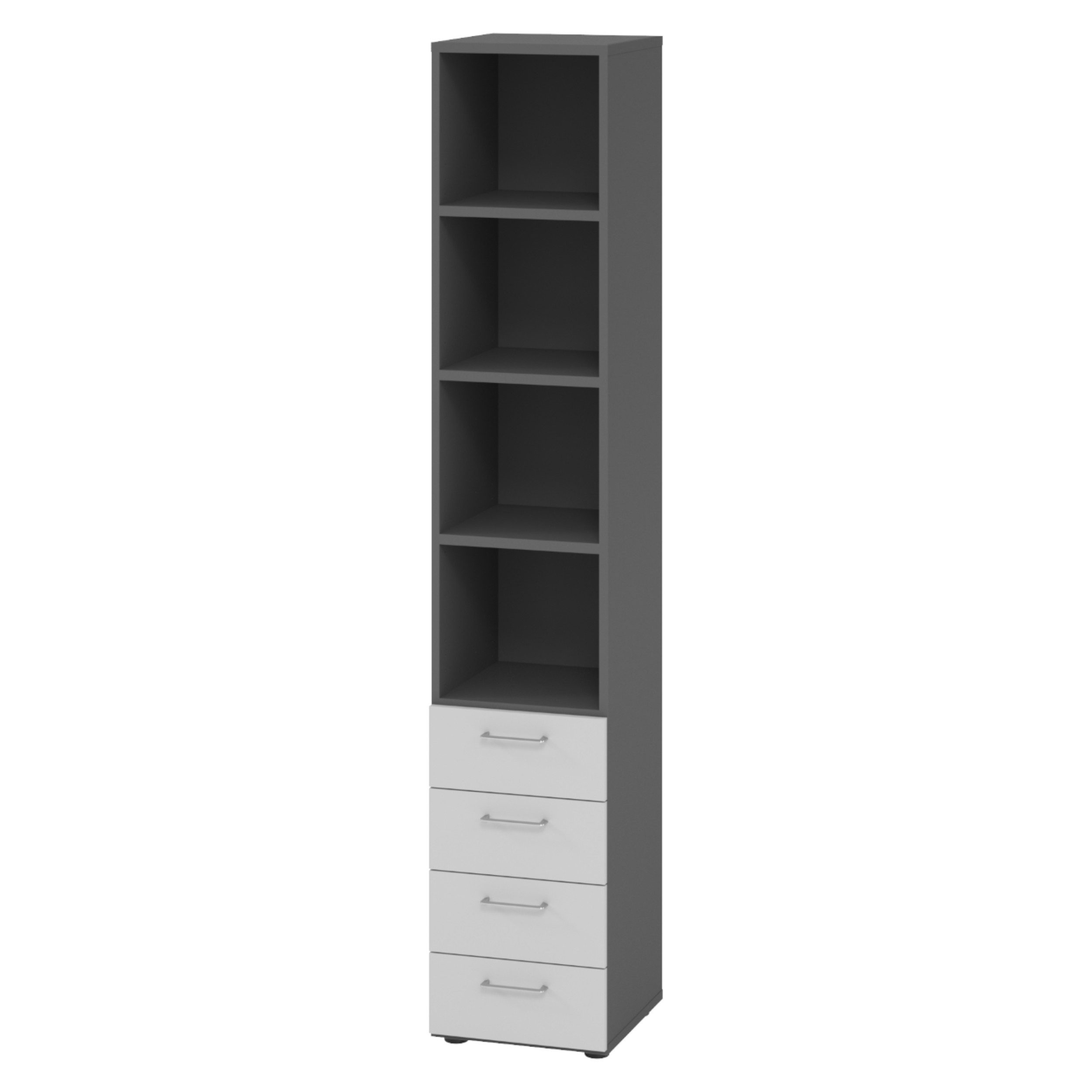 Ausstattung | Mit Schubladen 4 Schubladen + 4 Regalfächer Feinjustierbare Stellfüße für kippelfreien Stand Belastbarkeit je Schub: 10 kg Je Regalfach: 28 kg Schubladen mit Soft-Stop-System & stabilen Metallgriffen werkzeuglose Montage via. Klicksystem für 6-10x schnelleren Aufbau |