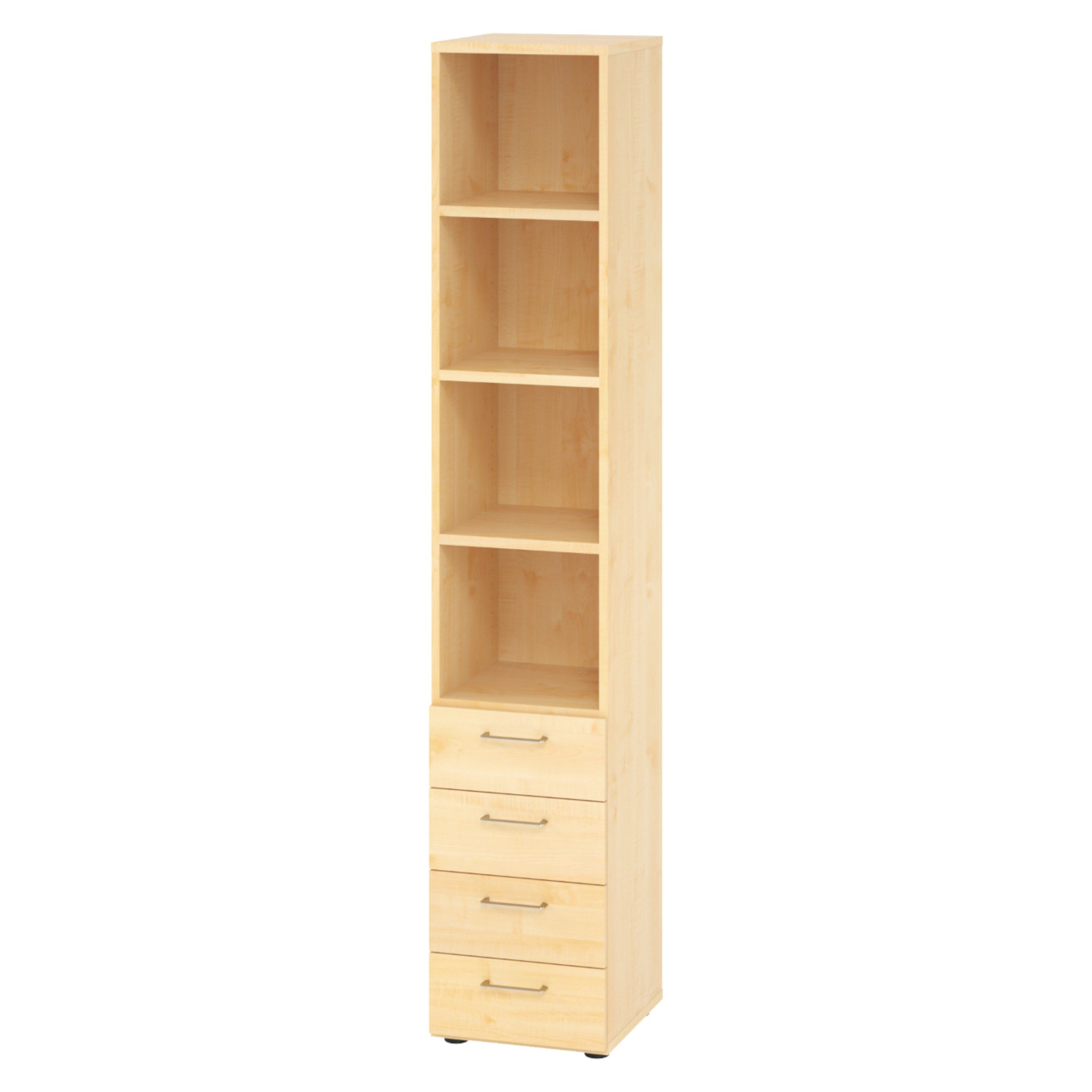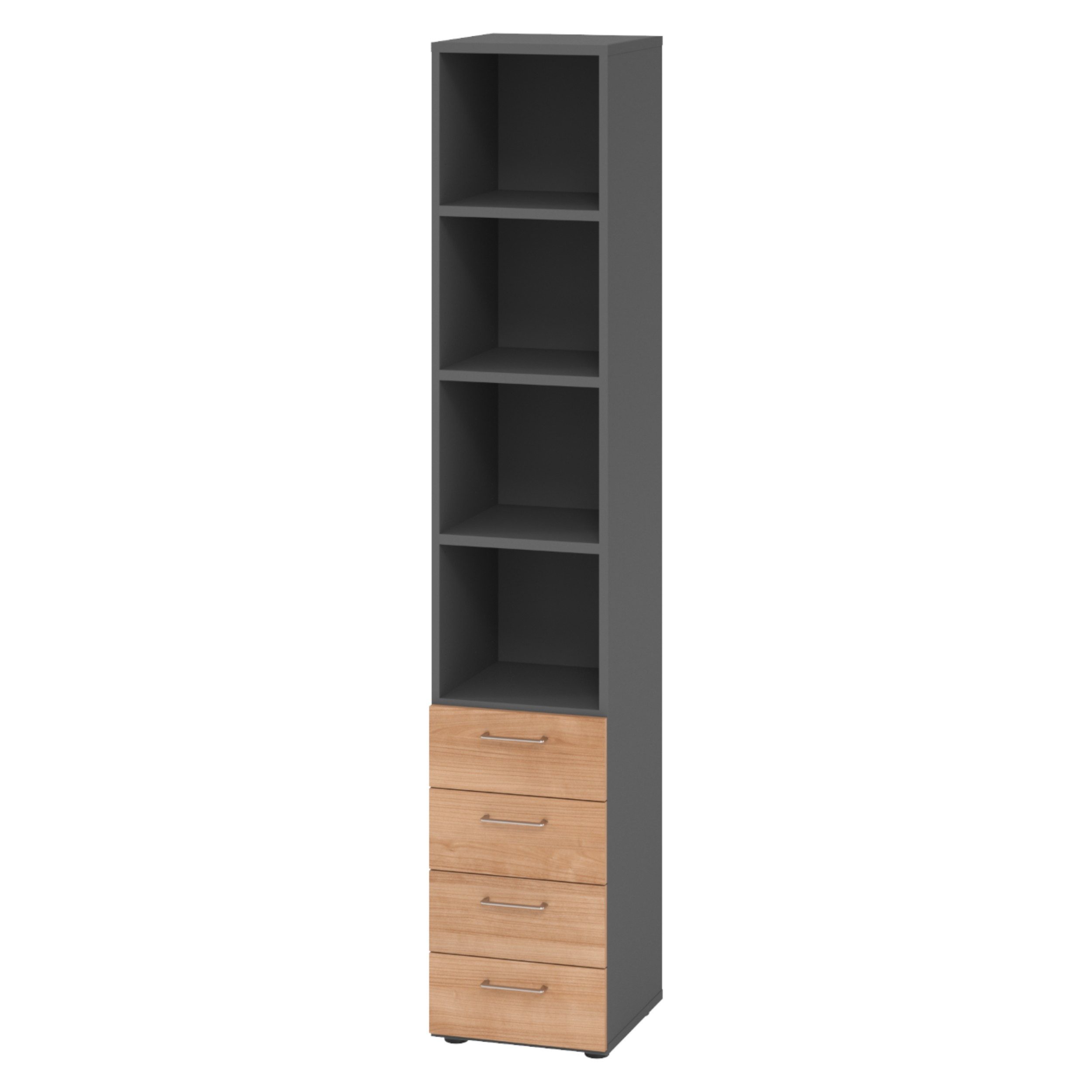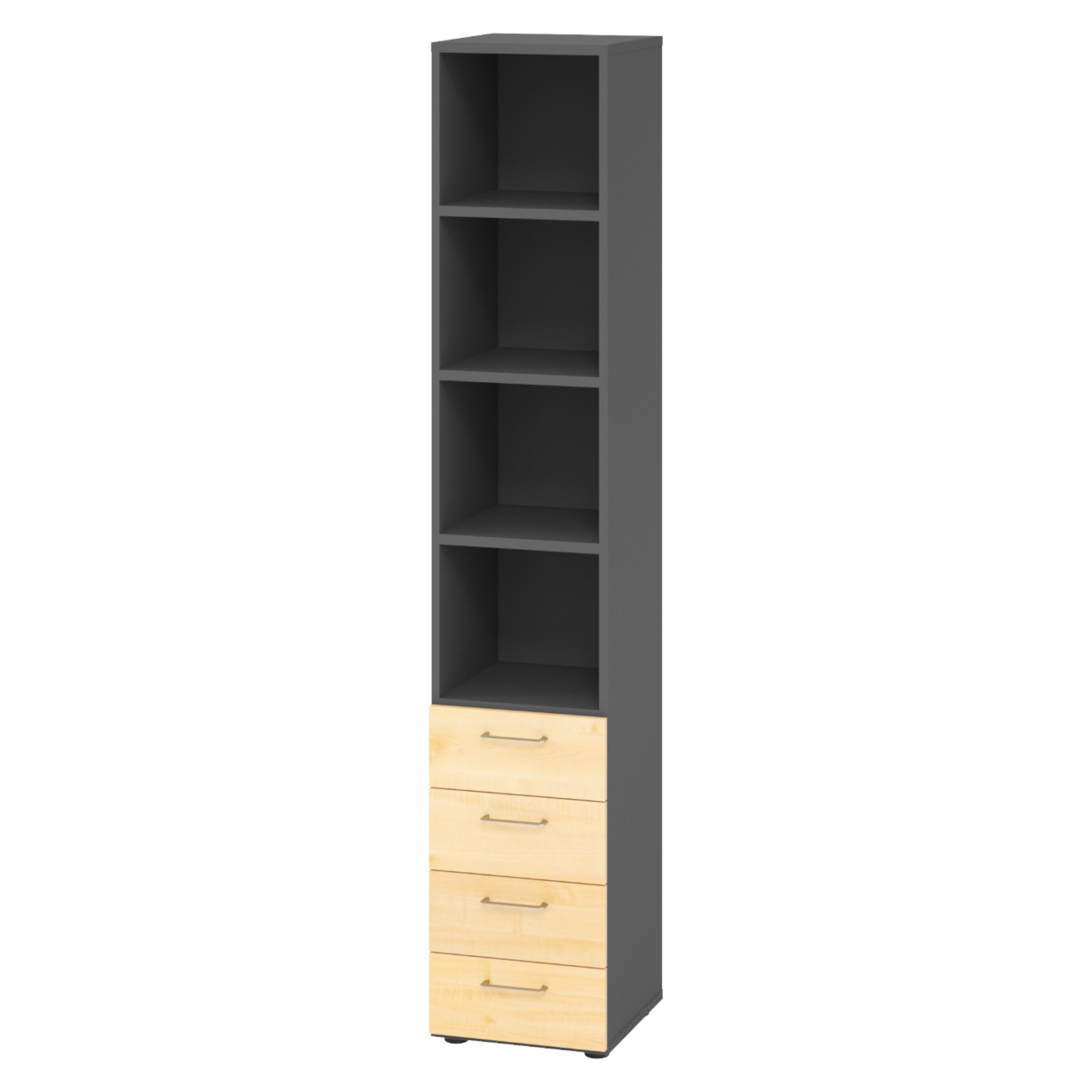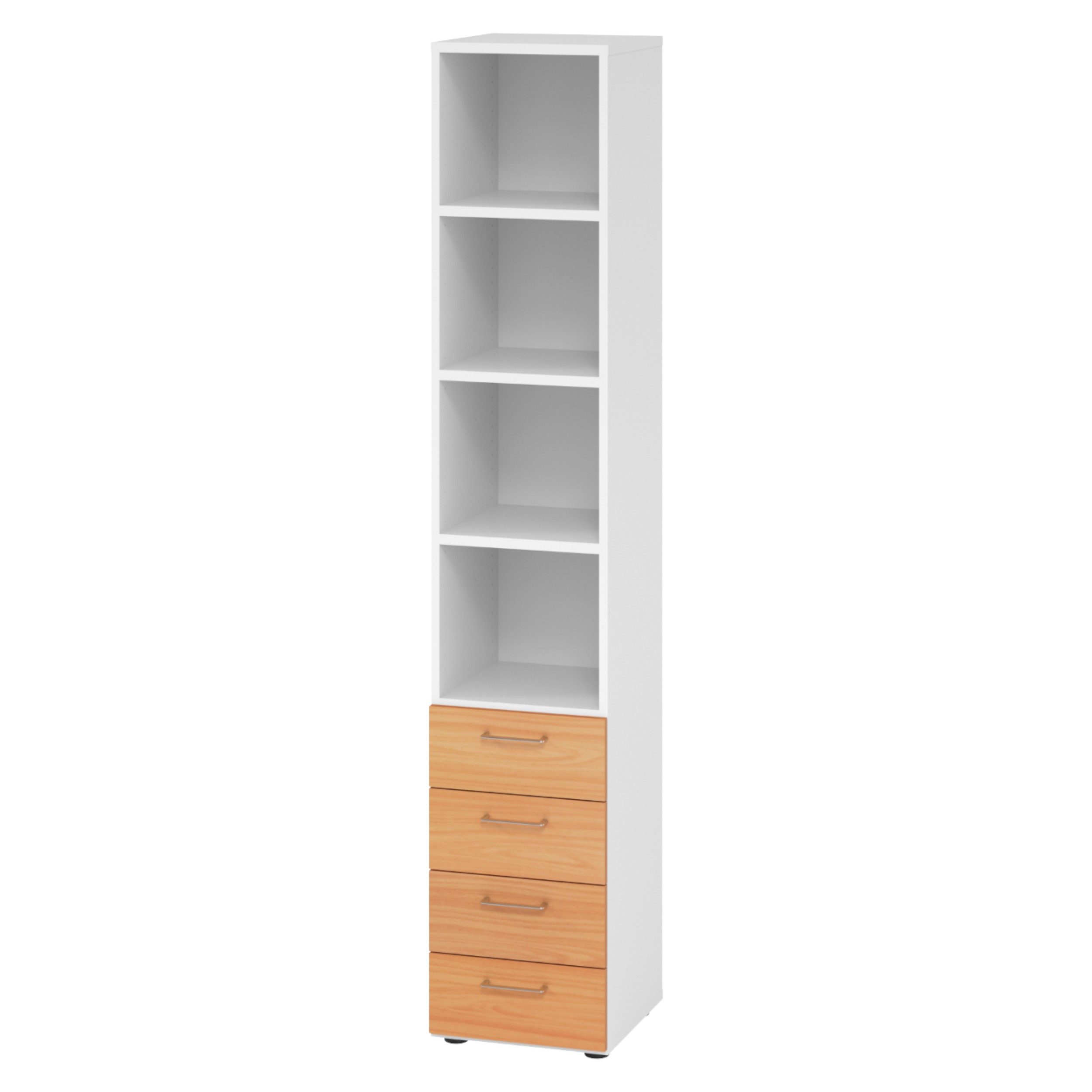 Ausstattung | Mit Schubladen 4 Schubladen + 4 Regalfächer Feinjustierbare Stellfüße für kippelfreien Stand Belastbarkeit je Schub: 10 kg Je Regalfach: 28 kg Schubladen mit Soft-Stop-System & stabilen Metallgriffen werkzeuglose Montage via. Klicksystem für 6-10x schnelleren Aufbau |