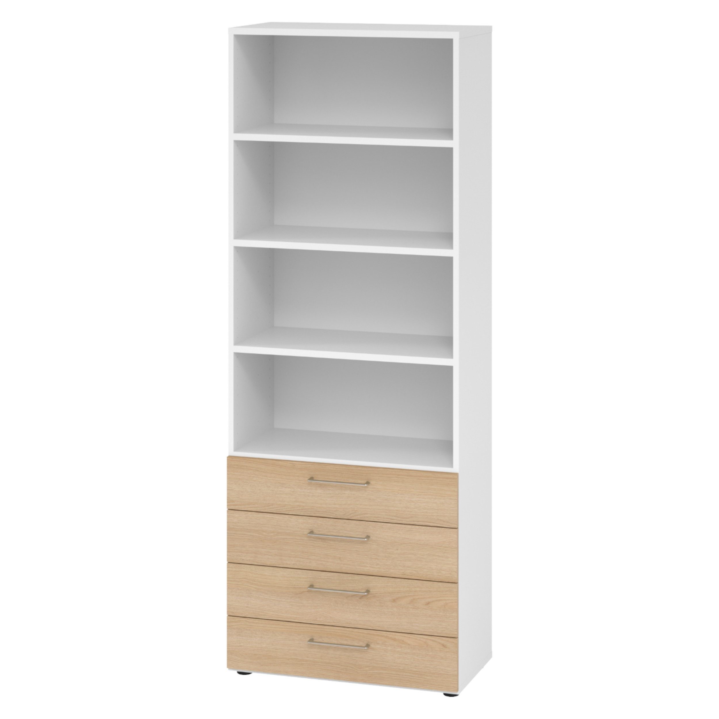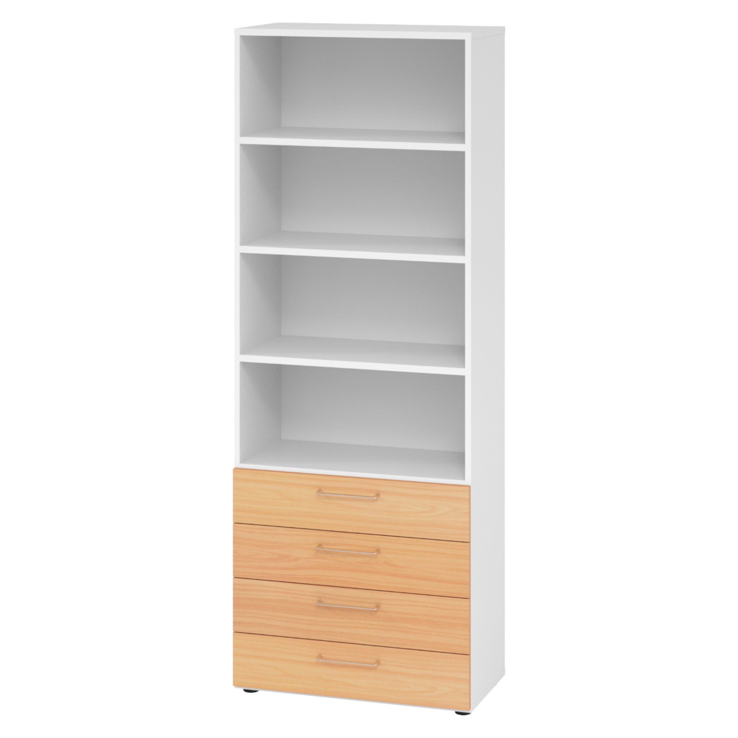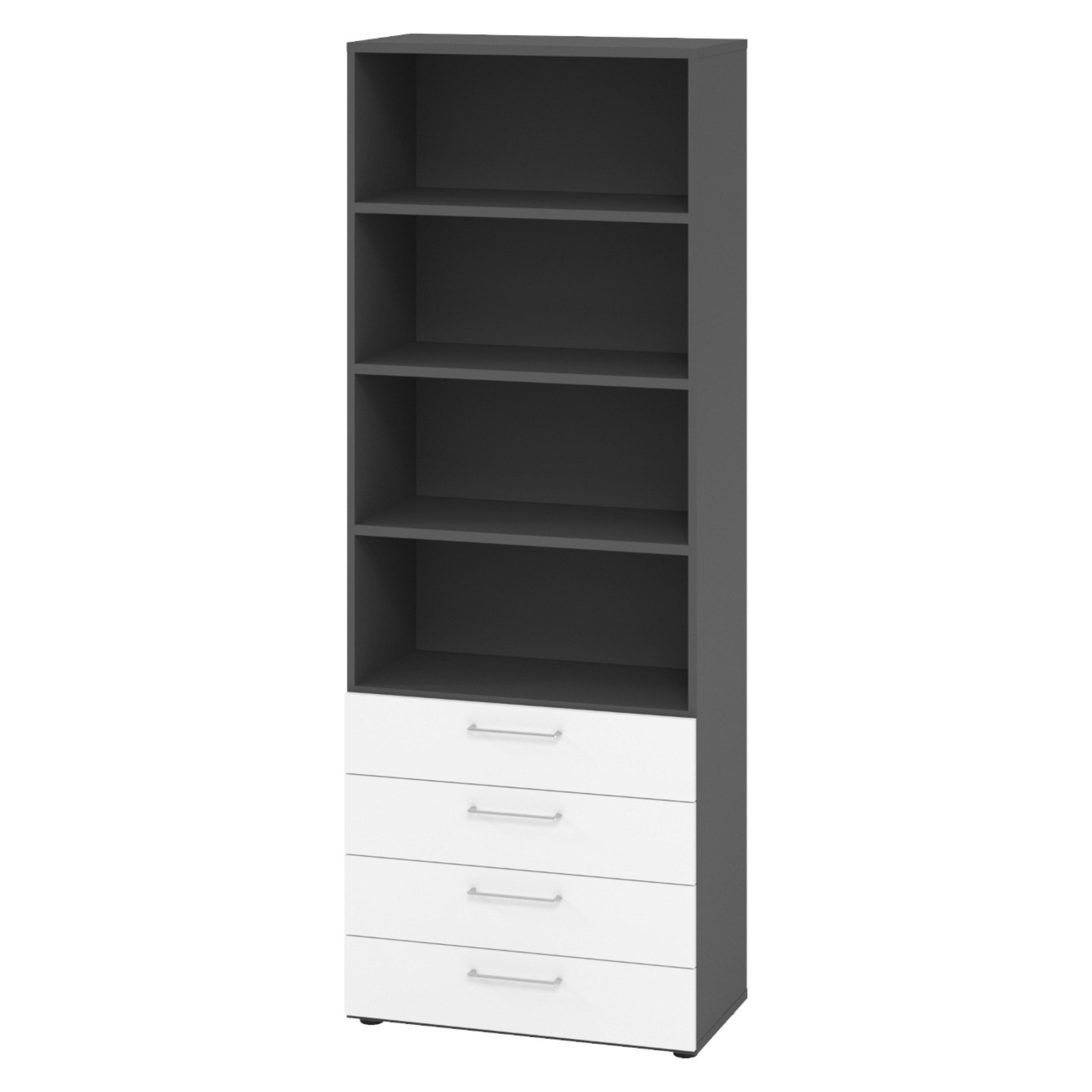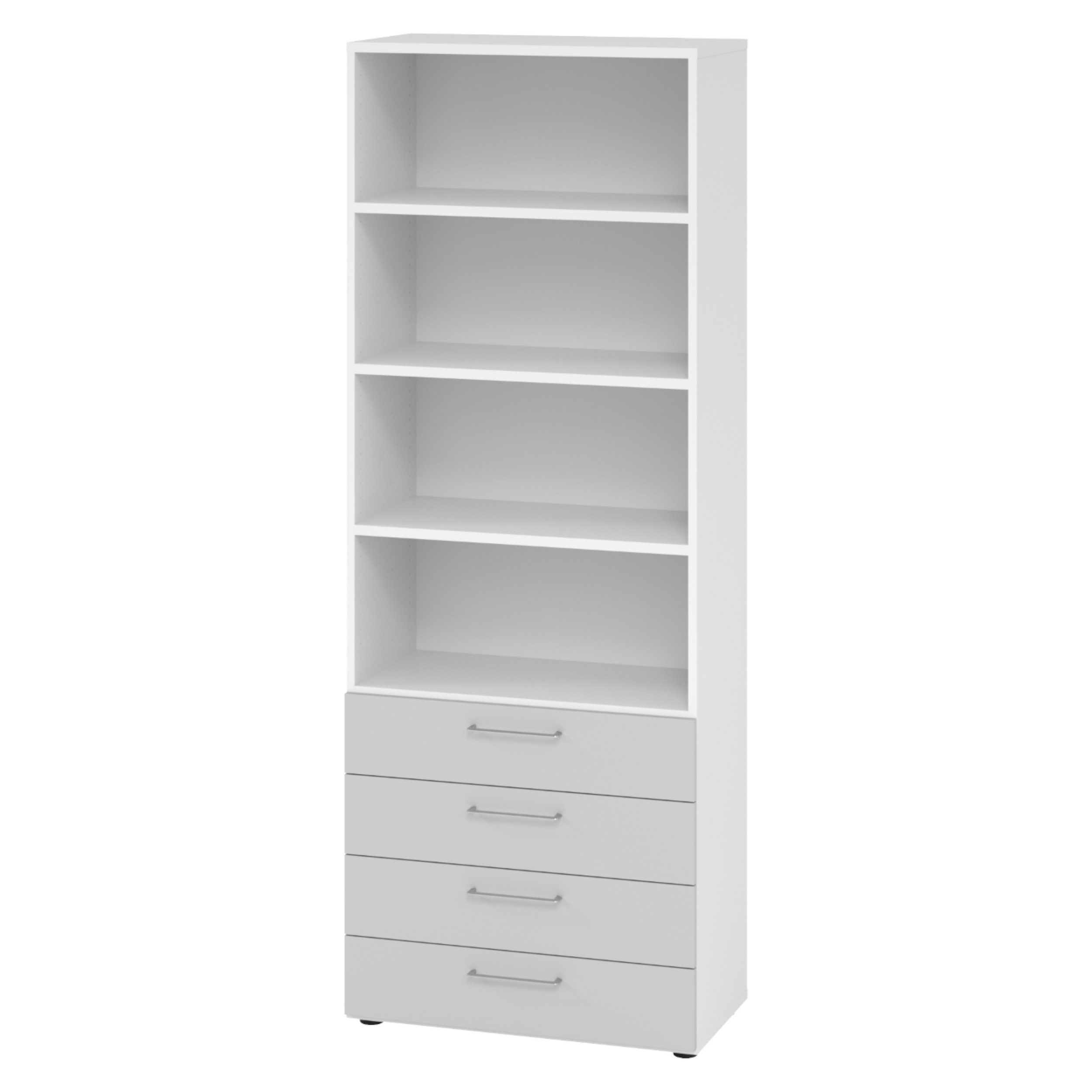 Ausstattung | Mit Schubladen 4 Schubladen + 4 Regalfächer Feinjustierbare Stellfüße für kippelfreien Stand Belastbarkeit je Schub: 10 kg Schubladen mit Soft-Stopp-System & stabilen Metallgriffen werkzeuglose Montage via. Klicksystem für 6-10x schnelleren Aufbau |