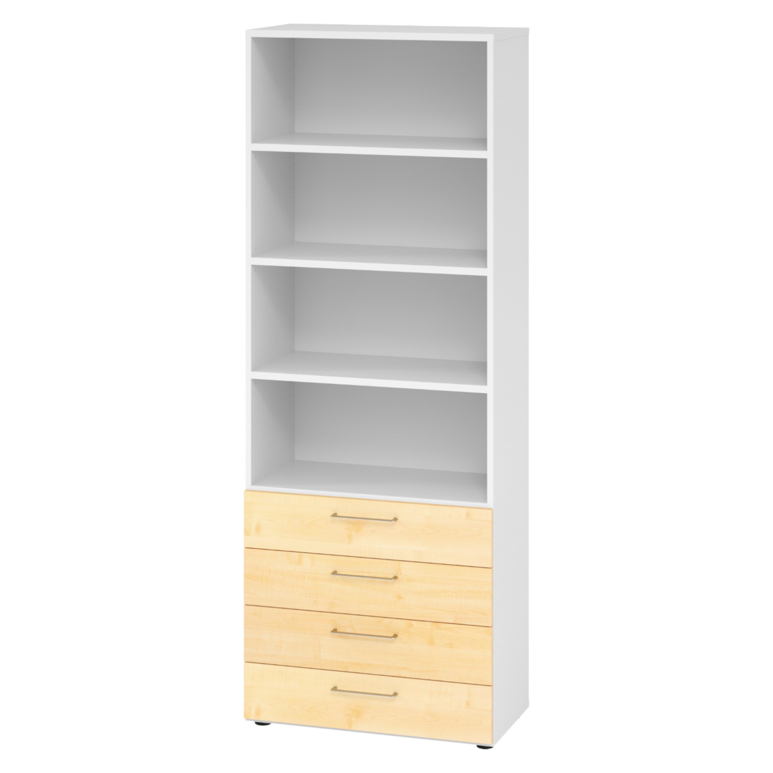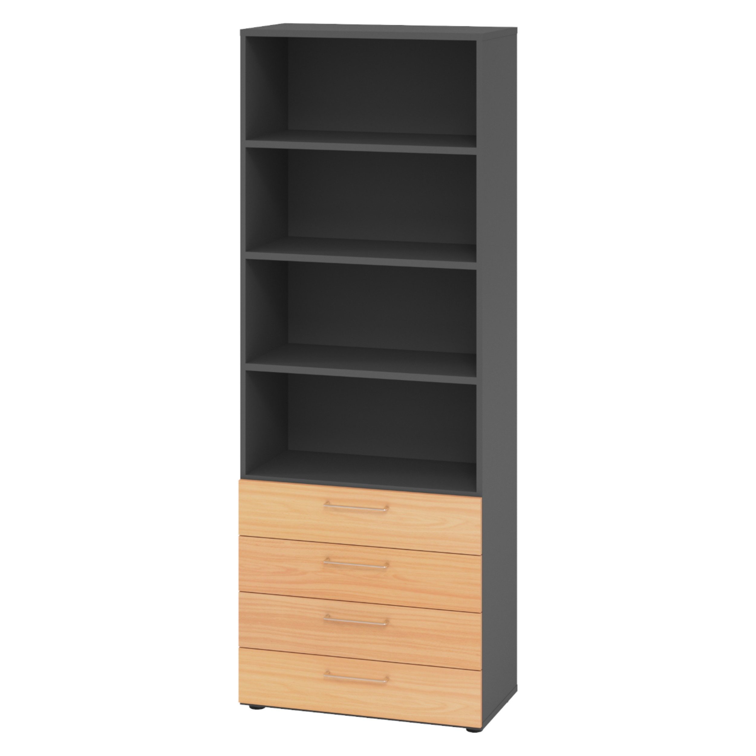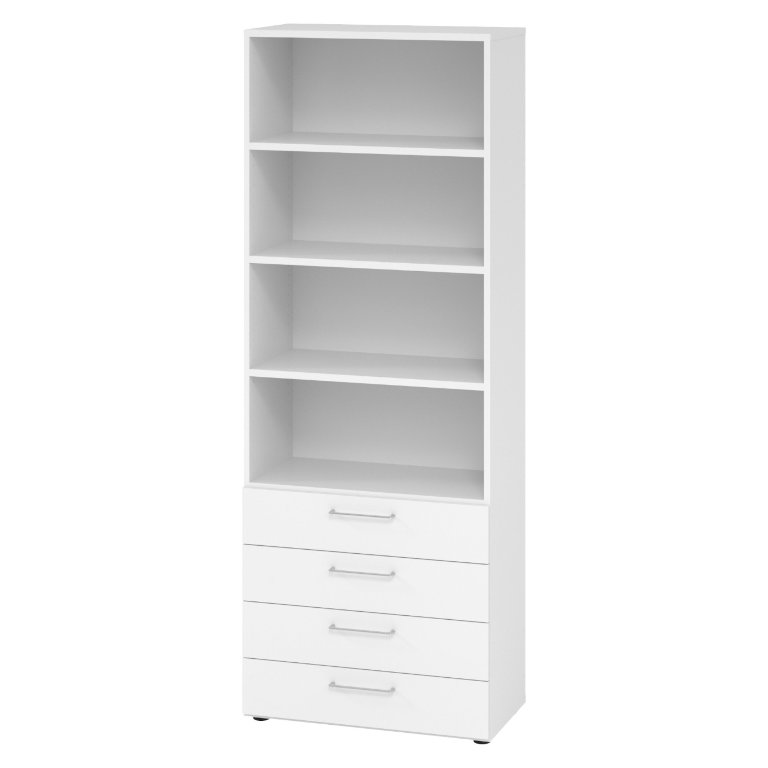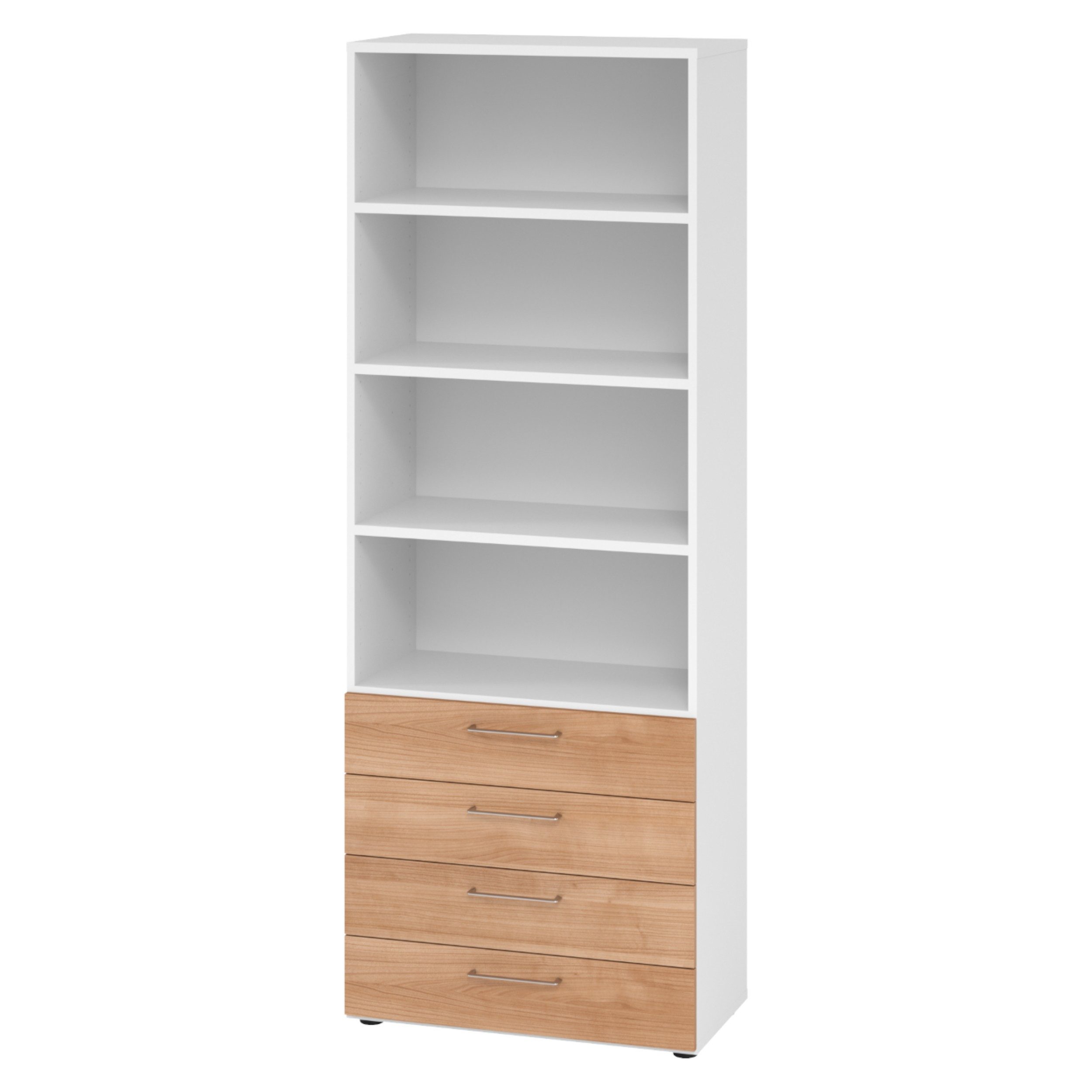 Ausstattung | Mit Schubladen 4 Schubladen + 4 Regalfächer Feinjustierbare Stellfüße für kippelfreien Stand Belastbarkeit je Schub: 10 kg Schubladen mit Soft-Stopp-System & stabilen Metallgriffen werkzeuglose Montage via. Klicksystem für 6-10x schnelleren Aufbau |