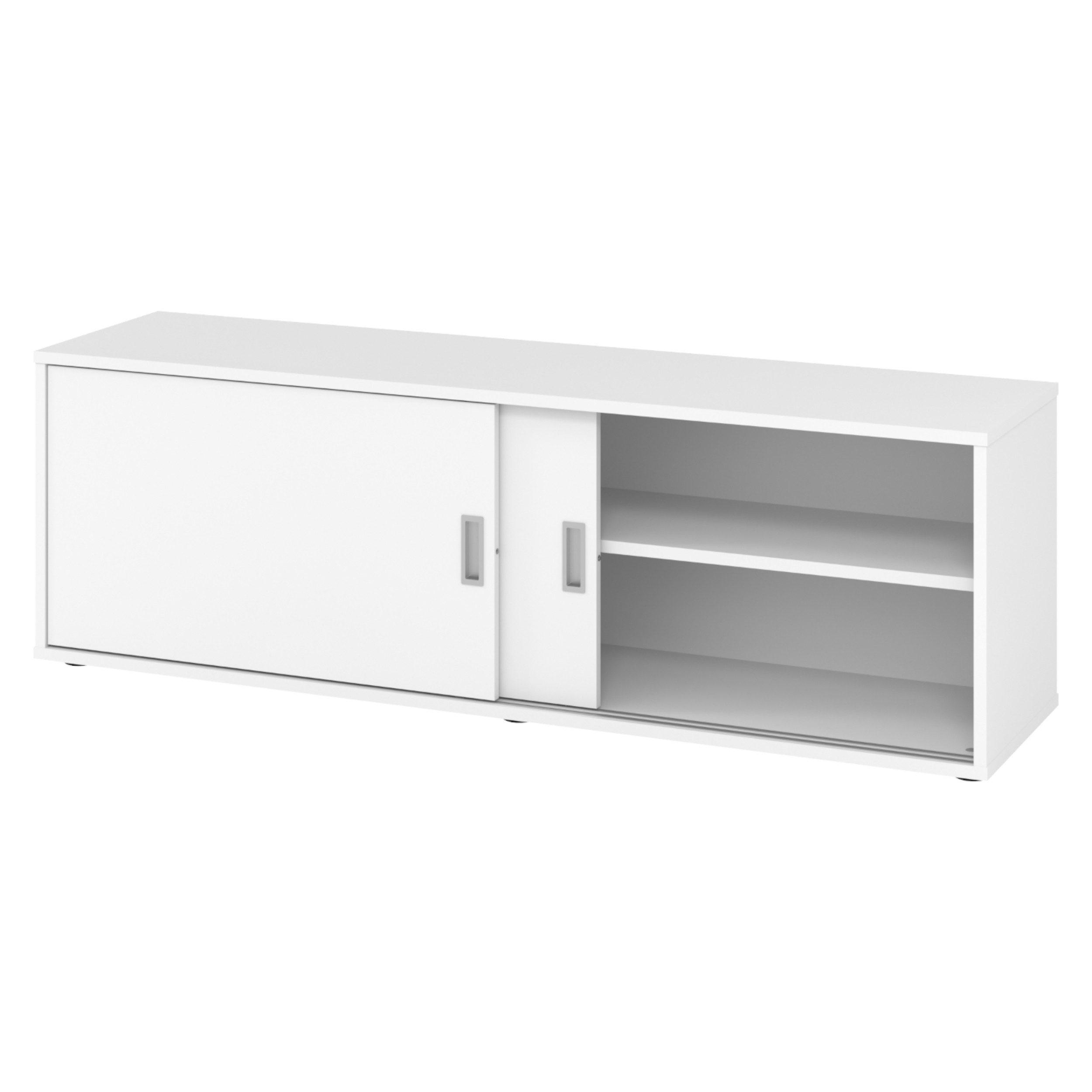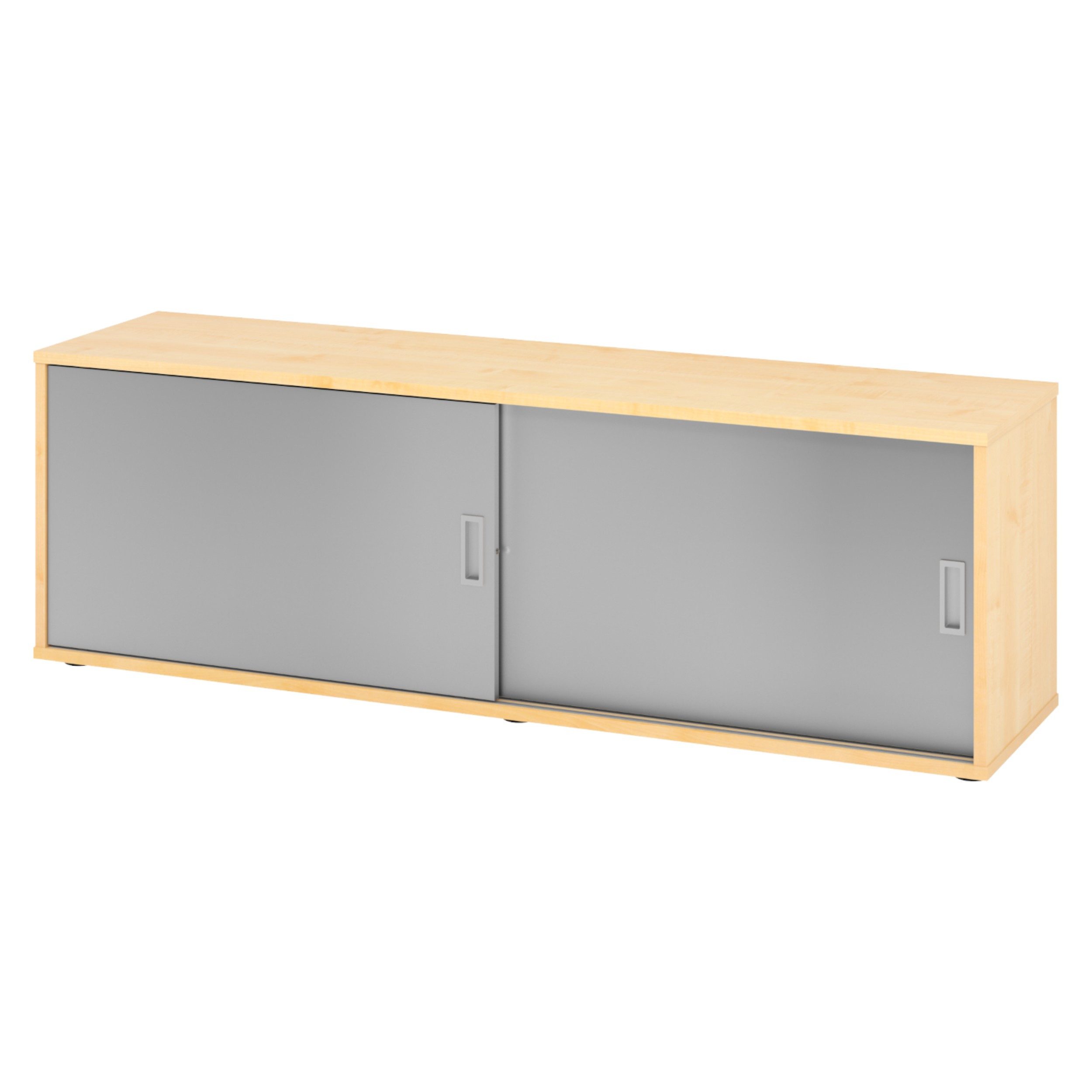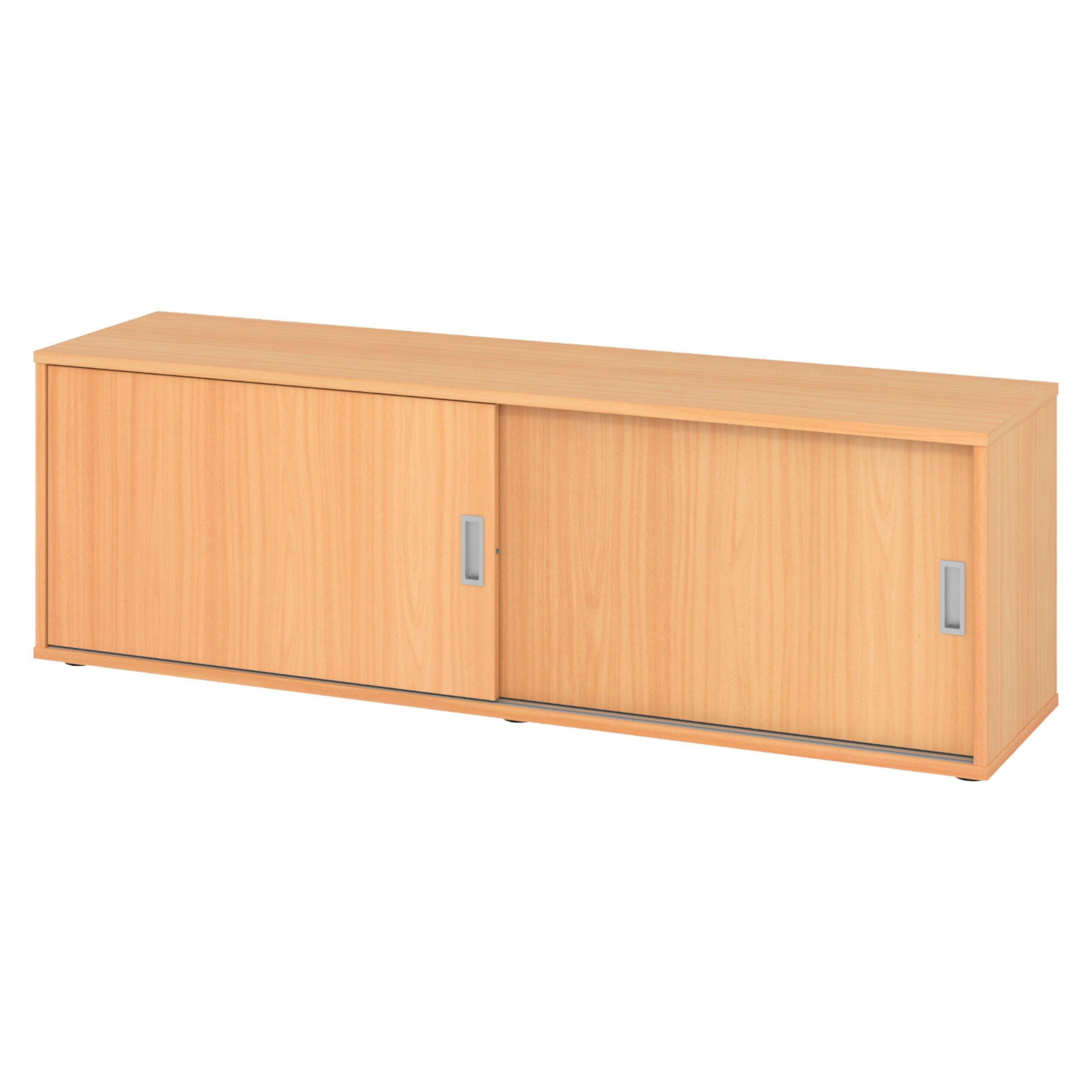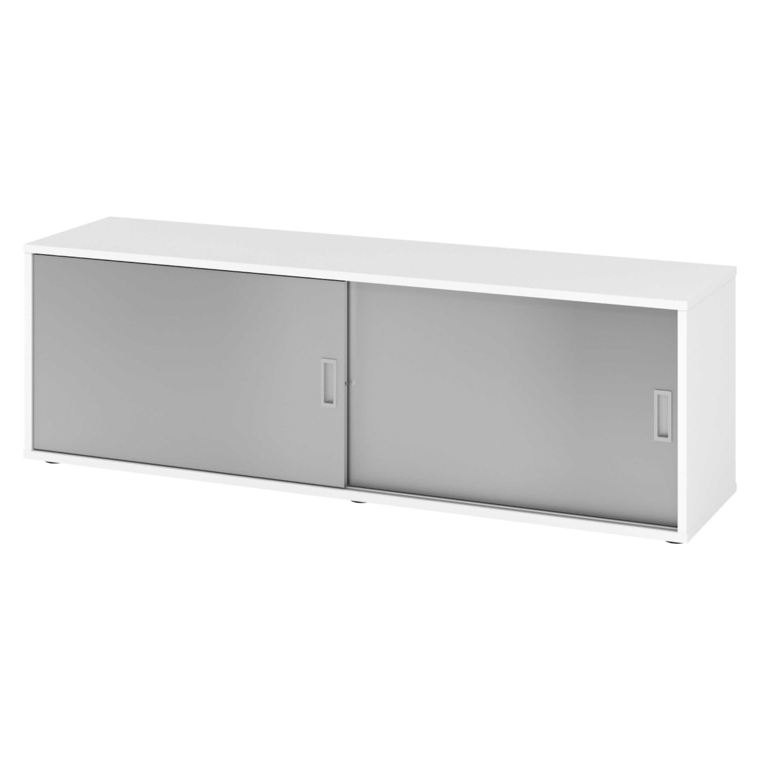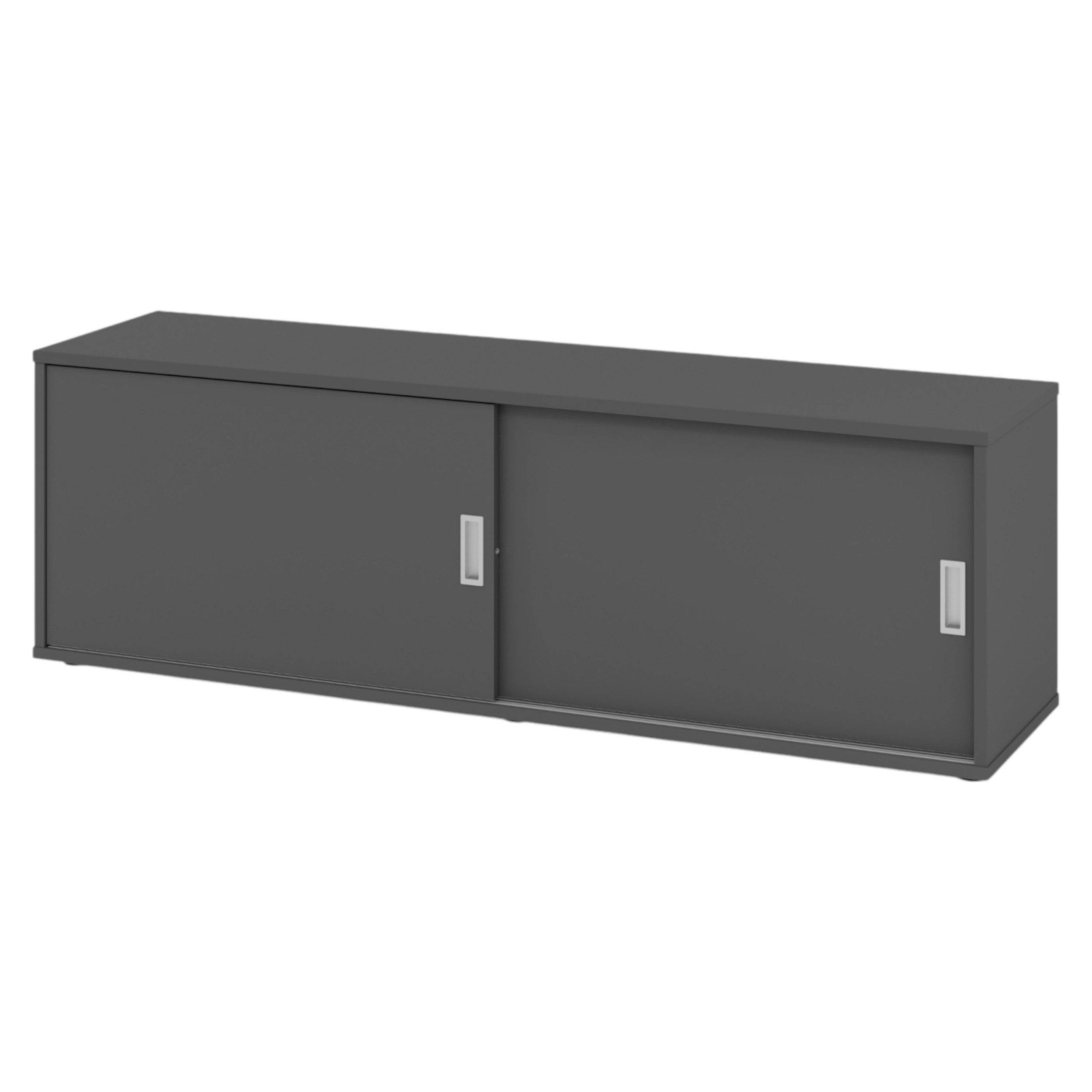 Das bümö office Lowboard mit Schiebetüren vereint hochwertige Verarbeitung, durchdachte Funktionalität und ein zeitloses Design – ideal für den professionellen Büroalltag. Mit seiner niedrigen Bauhöhe fügt sich das Sideboard dezent in jede Arbeitsumgebung ein und bietet dabei großzügigen Stauraum für Akten, Unterlagen oder Büromaterial. Die Ausstattung mit höhenverstellbaren Fachböden, einer stabilen Mitteltrennwand sowie einer Sichtrückwand im Korpusdekor macht das Möbelstück vielseitig einsetzbar – sowohl an der Wand als auch freistehend im Raum.