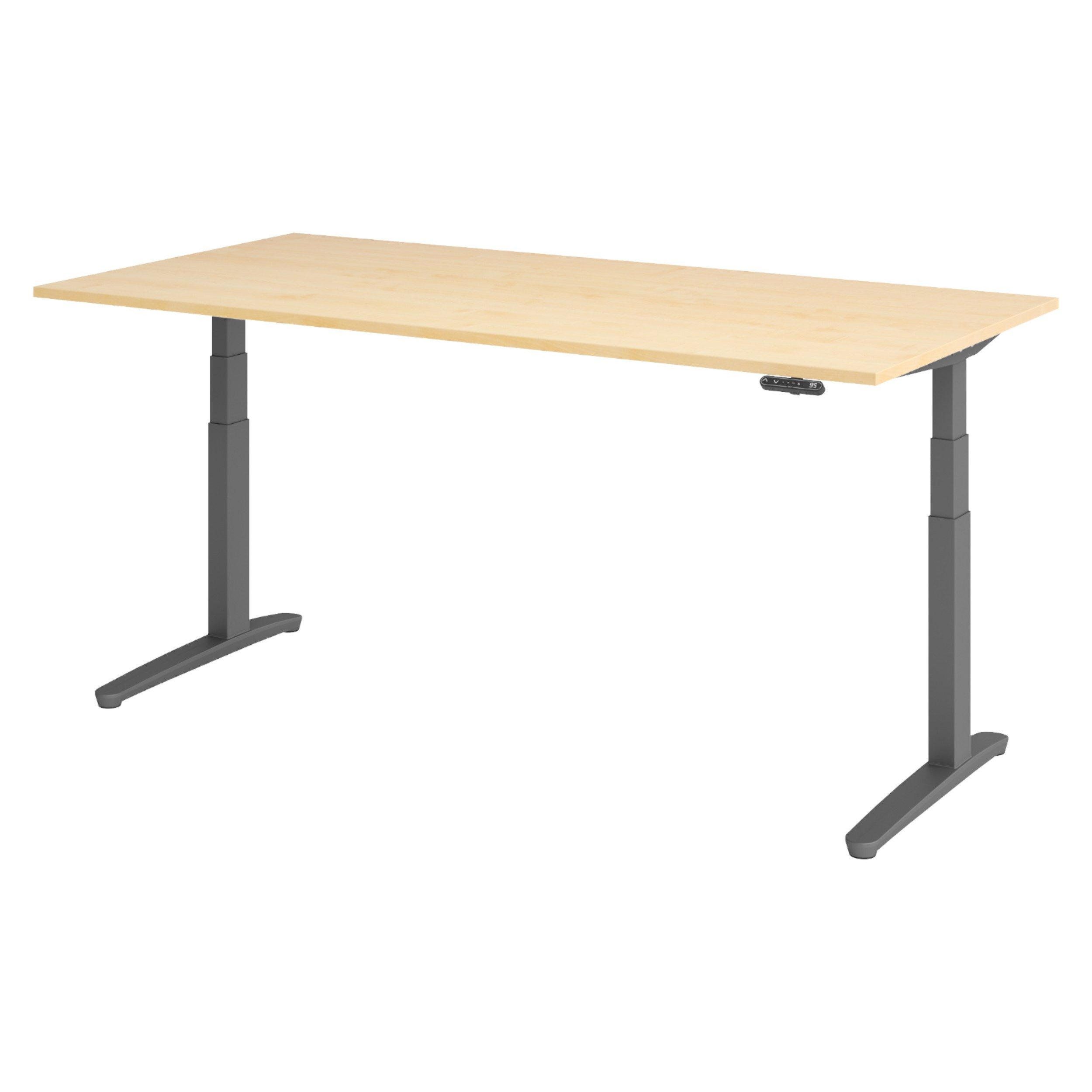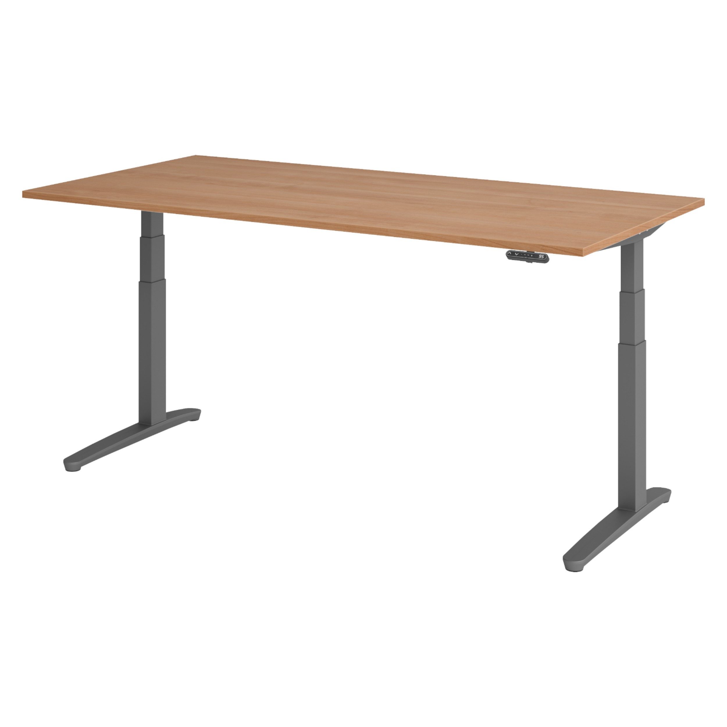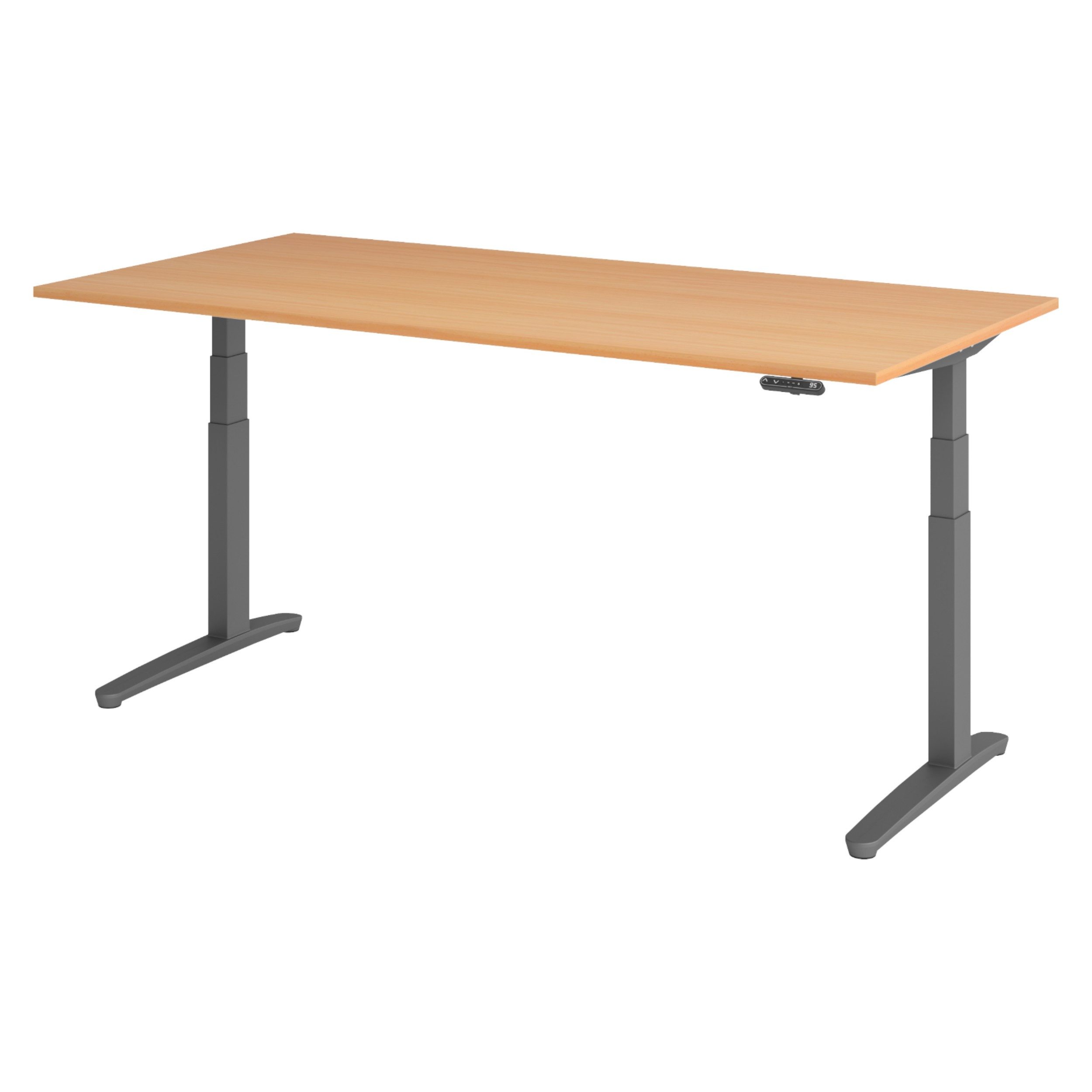 Der elektrische Designer-Schreibtisch XBHM von bümö ist ein ergonomisch, stufenlos höheneinstellbarer Profischreibtisch ohne störende Quertraverse für Ihren Arbeitsplatz. Seine Arbeitshöhe von 65-130 cm wird über einen Elektroantrieb eingestellt und ist somit perfekt für kleine als auch große Menschen geeignet. Ein Schalter mit Display & Memoryfunktion dient zum Einstellen der gewünschten Arbeitshöhe per Höher- und Tiefertaste. Der Bürotisch eignet sich durch seine max. Höhe von 130 cm perfekt auch als Steharbeitsplatz. Eine Höhenjustierung an den Tischkufen garantiert auch auf unebenen Böden kippelfreien, stabilen Stand. Der Büroschreibtisch kommt aufgrund seiner vielfältigen Konfiguration überall perfekt zum Einsatz!