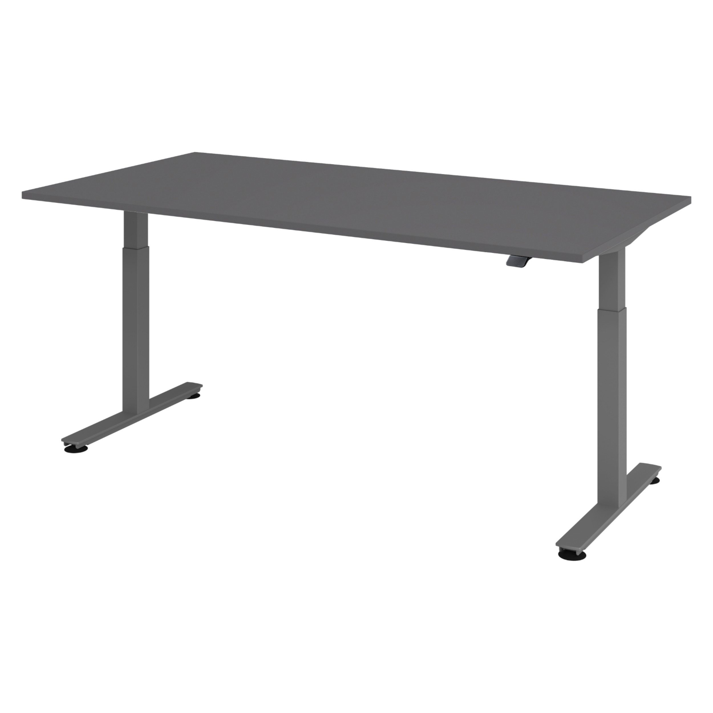 Der elektrische Schreibtisch XMST von bümö ist ein ergonomisch, stufenlos höheneinstellbarer Profischreibtisch ohne störende Quertraverse für Ihren Arbeitsplatz. Seine Arbeitshöhe von 71-120 cm wird über einen 2-Motor-Elektroantrieb eingestellt und ist somit perfekt für kleine als auch große Menschen geeignet. Ein Schalter dient zum Einstellen der gewünschten Arbeitshöhe per Höher- und Tiefertaste. Der Bürotisch eignet sich durch seine max. Höhe von 120 cm perfekt auch als Steharbeitsplatz. Eine Höhenjustierung an den Tischkufen garantiert auch auf unebenen Böden kippelfreien, stabilen Stand. Der Büroschreibtisch kommt aufgrund seiner vielfältigen Konfiguration überall perfekt zum Einsatz.
