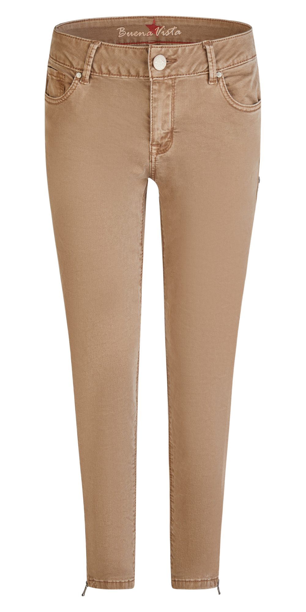 Dank des typischen V-Bunds hinten sitzt die Hose perfekt auf der Taille, formt eine schöne Rückansicht und bleibt dabei herrlich bequem. Der Stretch-Twill ist weich im Griff, elastisch und ideal für den Alltag. Die 7/8-Длина zeigt etwas Knöchel und sorgt für einen modernen, leichten Look – ideal für Frühjahr, Sommer und Übergangszeit.