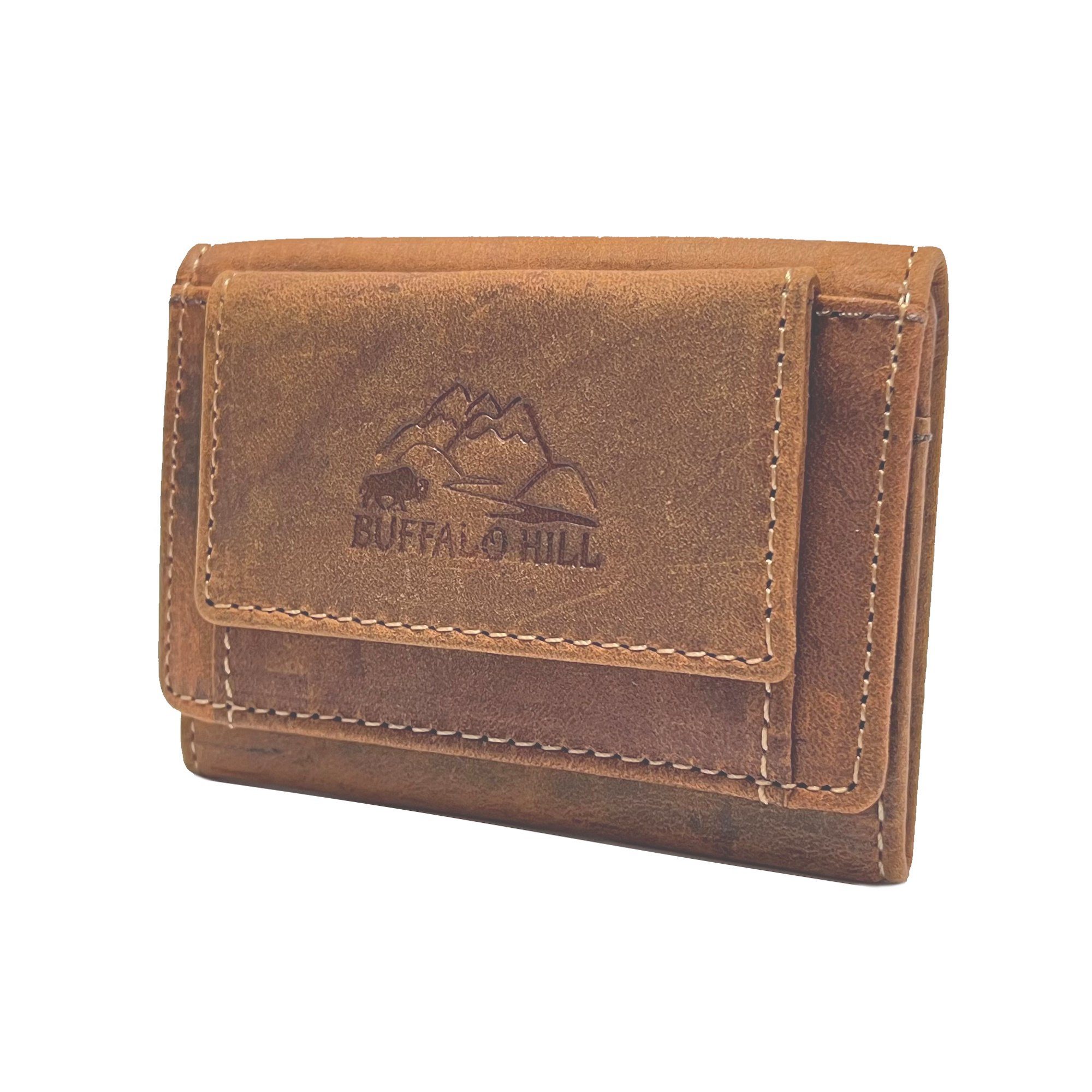 Die BUFFALO HILL Mini Geldbörse >7< ist der perfekte Begleiter im Alltag. Das zu 100% echte, per Hand verarbeitete Büffelleder, sieht nicht nur gut aus, es bekommt zudem auch im Laufe der Zeit den bekannten Used-Look. Einfach aufgebaut, mit einem Überschlag und einem Kleingeldfach. Genug Platz für bis zu 3 Kreditkarten, Scheingeld gefaltet und ein wenig Münzgeld, dennoch handlich und überall verstaubar.