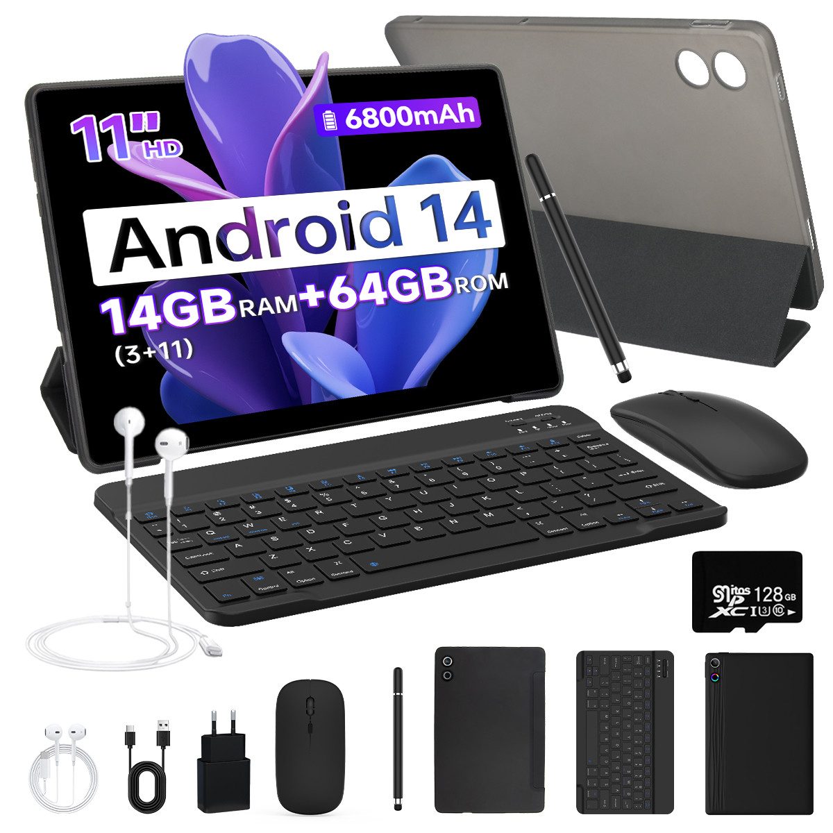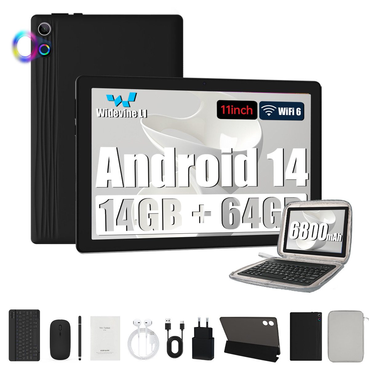 6800mAh Akku & WiFi 6 & Bluetooth 5.3: Tablet 11 Zoll hat einen eingebauten 6800mAh Akku mit großer Kapazität für eine lange Akkulaufzeit und erfüllt die Bedürfnisse der Allwetter-Nutzung. WiFi 6 Technologie unterstützt sowohl 2.4GHz und 5.0GHz Bänder für stabilere Netzwerkgeschwindigkeit. Bluetooth 5.3 hat eine große Reichweite, schnelle Übertragung und starke Kompatibilität, leicht mit allen Arten von Bluetooth-Geräten zu verbinden.
