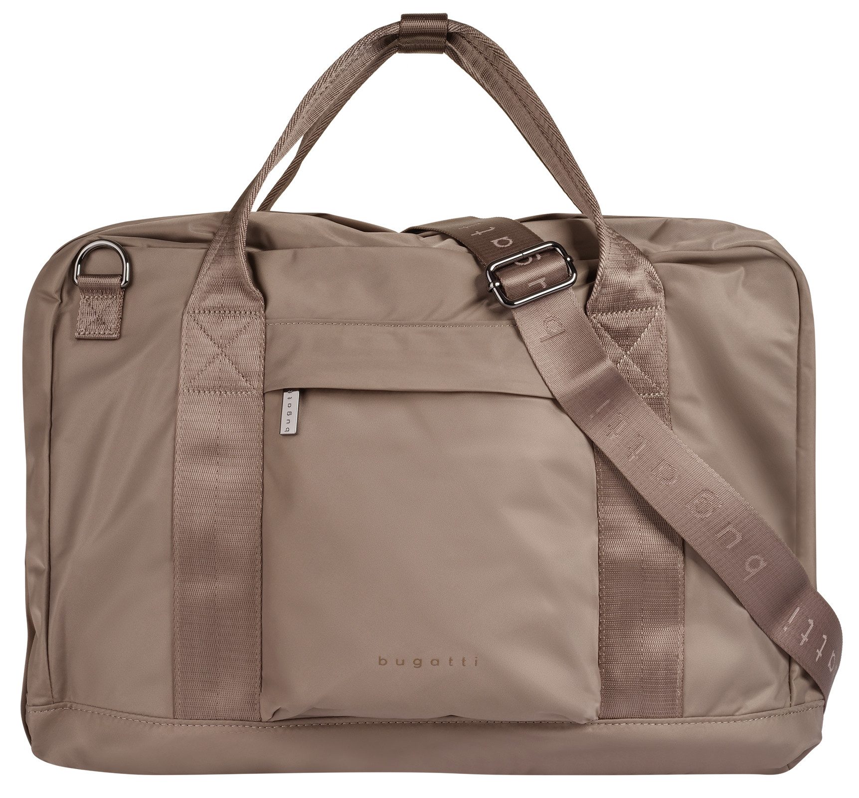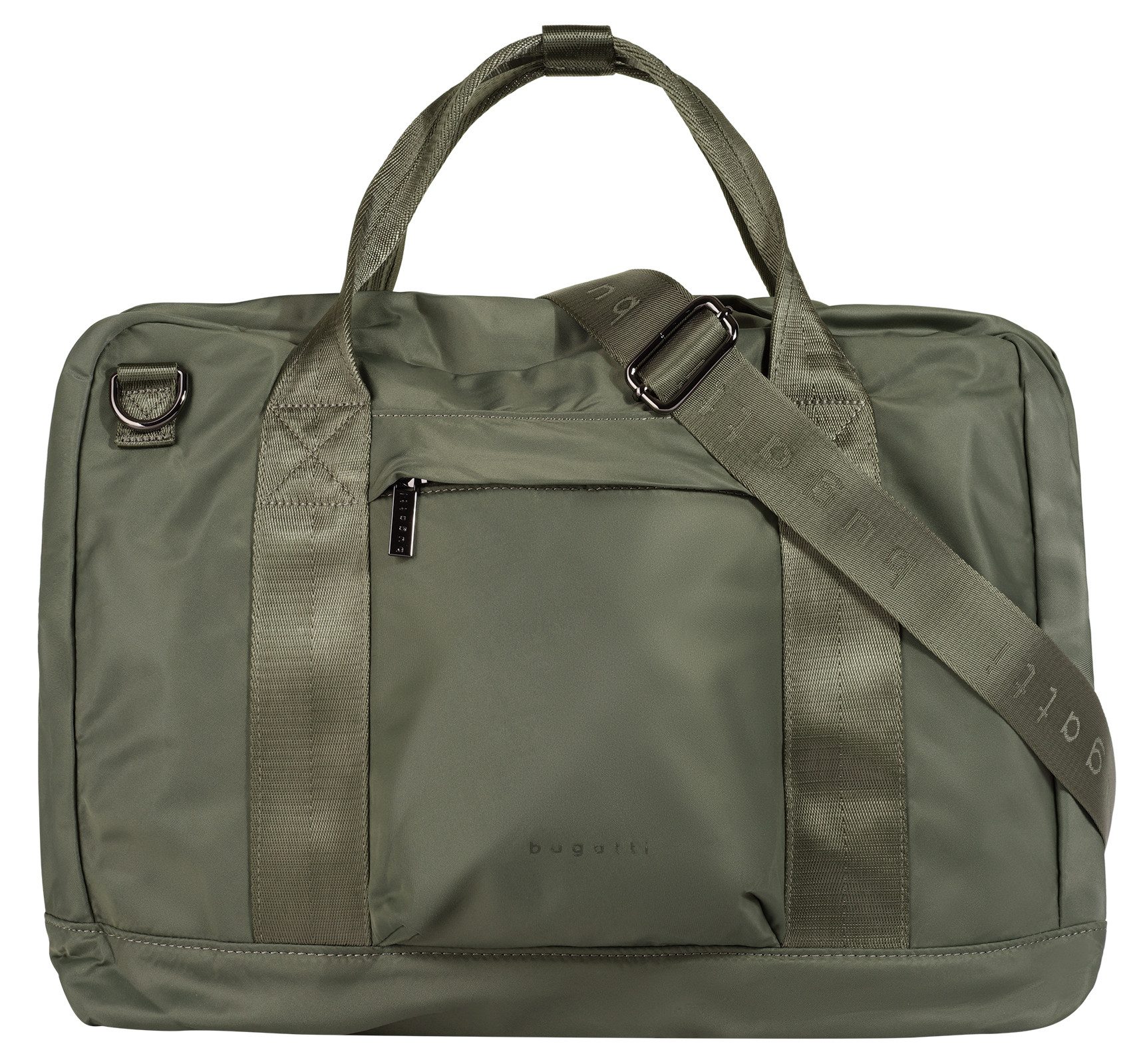 Mit der Businesstasche von bugatti behalten Sie stets den Überblick! Und das sogar wortwörtlich, denn dank ihres umlaufenden Reißverschlusses lässt sie sich vollständig aufklappen. Im Hauptfach finden Sie neben verschiedenen Einsteckmöglichkeiten auch ein gepolstertes Notebook- und ein Smartphonefach sowie ein großes Hemdfach. Ein Vorderfach und eine Trolleyhalterung auf der Rückseite vervollständigen die Ausstattung. Wechseln Sie für maximalen Tragekomfort zwischen weichen Henkeln und abnehmbarem Schultergurt. Die mitgelieferte Reißverschlusstasche eignet sich übrigens hervorragend als Kosmetiktasche und bewahrt Ihre Businesstasche platzsparend auf, wenn sie mal nicht im Einsatz ist.