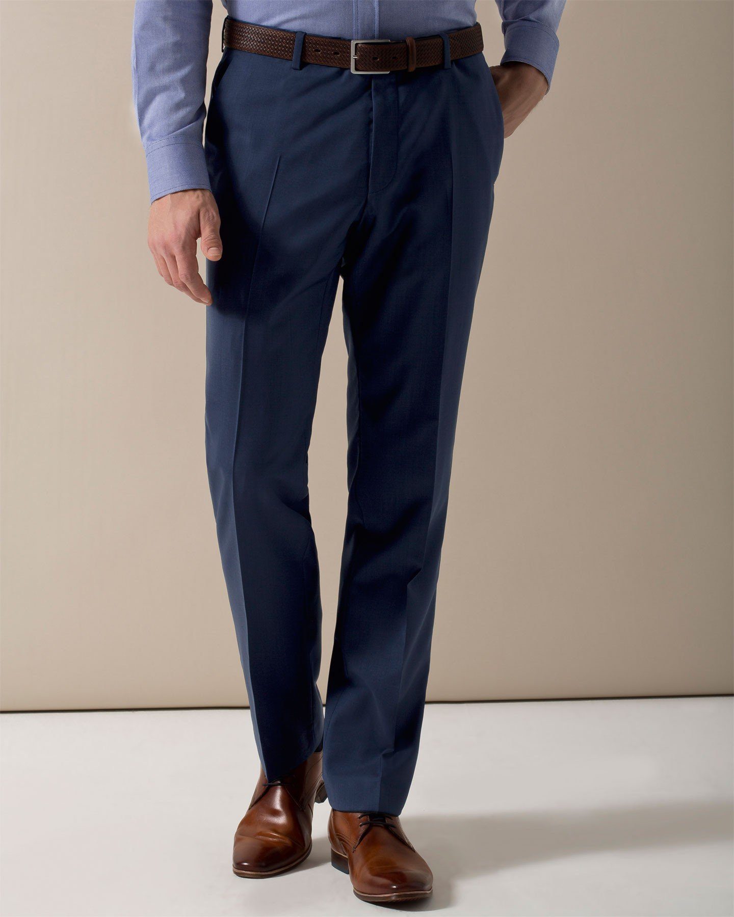 Regular Fit mit geradem Bein und Bügelfalten in Vorder- und Hinterhose und dünnem Frontfutter bis zum Knie