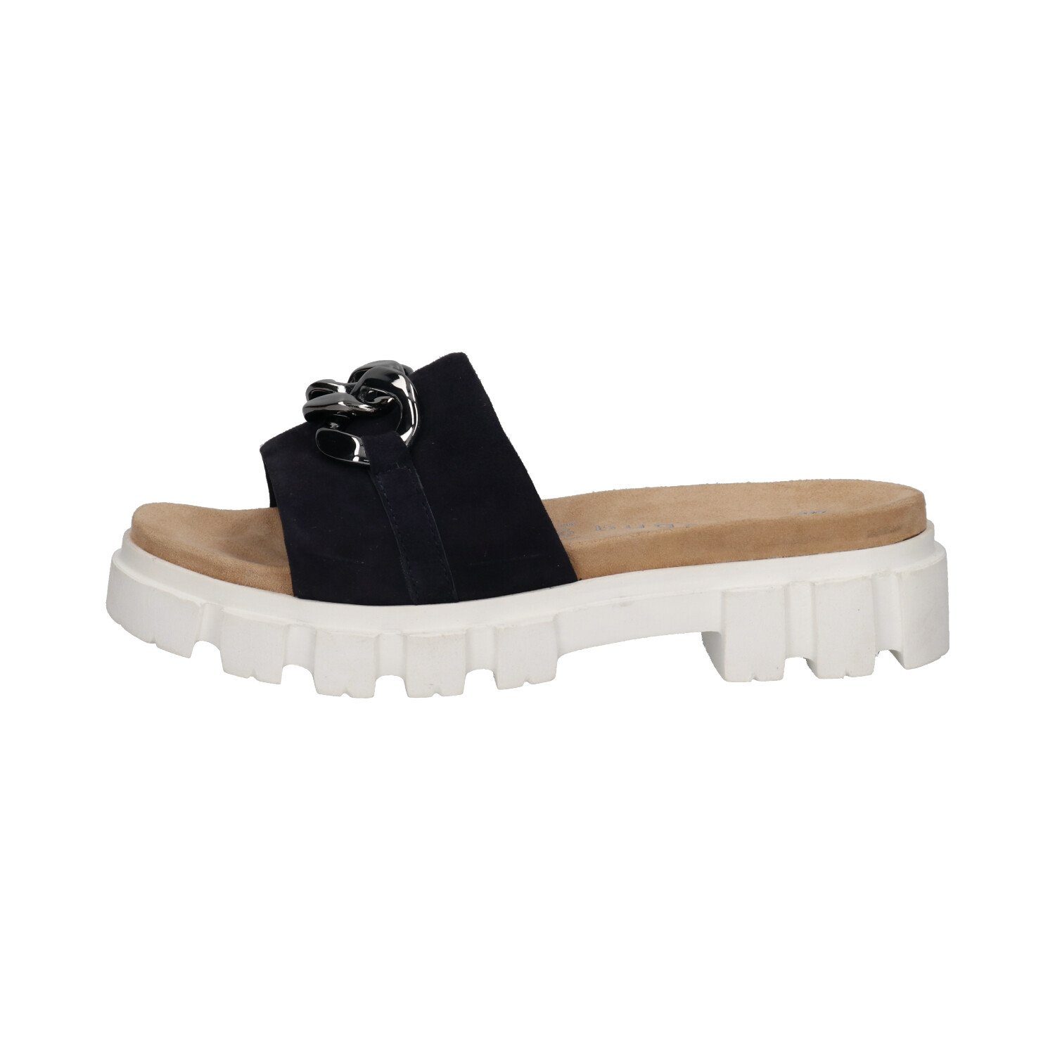 Die schicke Damen Pantolette RYLIE von bugatti, zeigt sich mit stark profilierter Plateaulaufsohle. Auch das Obermaterial, das mit kleinen Straßsteinchen besetzt ist, zieht alle Blicke auf sich. Die weich gepolsterte Innensohle aus Textil mit Soft-Fit-Einlage:eine anpassungsfähige und weiche Hightech-Einlage aus Memory Foam, sorgt für ein butterweiches Trage- und Laufgefühl. Der Damenschuh wurde in der Weite F1/2 gearbeitet. Ein Eycatcher ist die zweifarbige Laufsohle mit Glitzer-Umrandung und einer Plateauhöhe von ca. 3,0 cm. Der Schuh ist federleicht, dank Genil-Light-Laufsohle.
