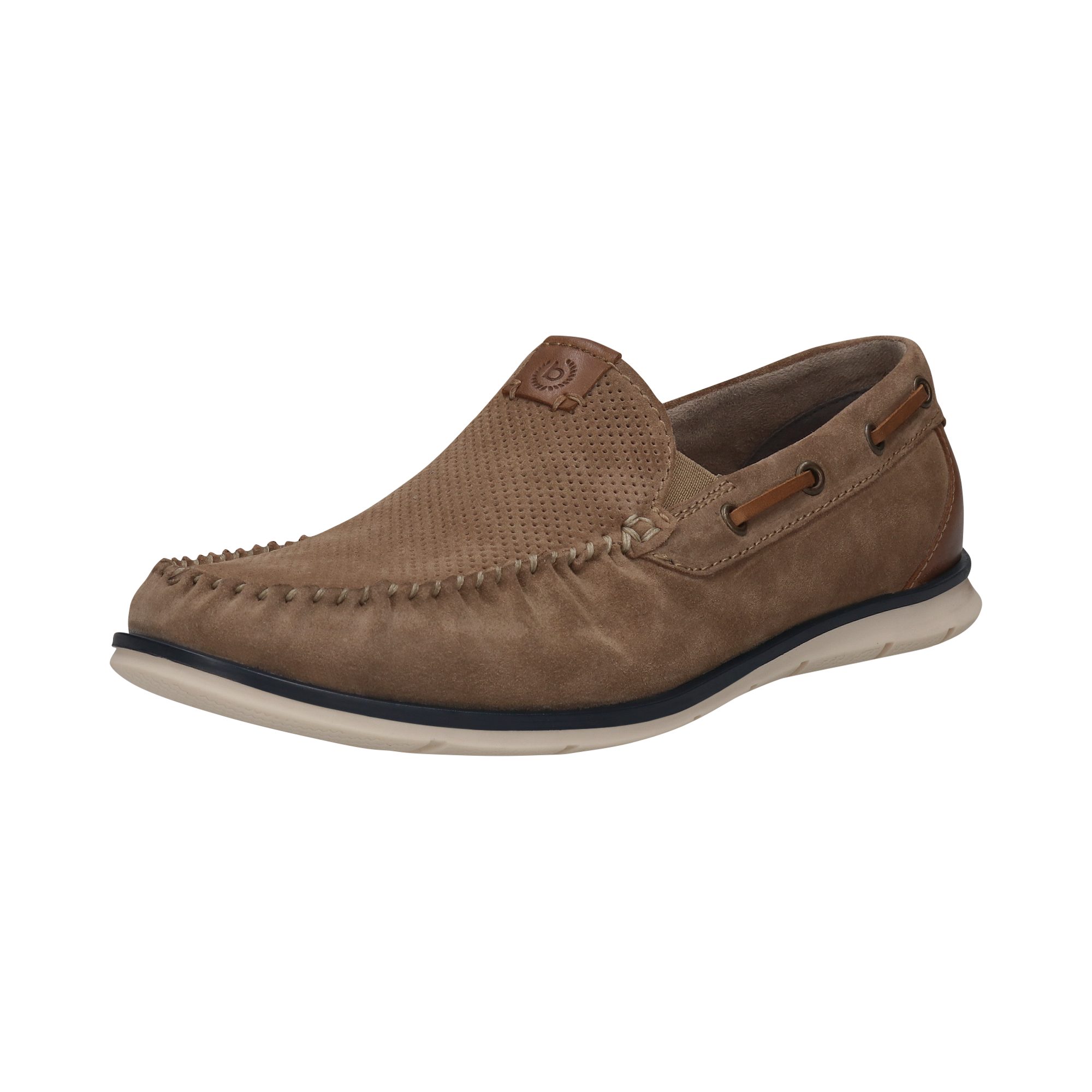Reinschlüpfen, los laufen und den ganzen Tag ein unbeschwertes Laufgefühl gnießen. Dieser bequeme Herren Mokassin aus dem Hause BUGATTI überzeugt durch weiches Glattleder. Versehen mit der typischen Mokassin-Naht und braun abgesetzte Details, verleihen dem Slipper das "Gewisse Etwas". Das angenehm weiche Textilfutter schmiegt sich sanft an den Fuß an und sorgt für Wohlbefinden. Dank der weich gepolsterten Innensohle aus Textil mit Soft-Flex-Ausstattung, besonders soft und flexible im Ballenbereich, können Sie längere Ausflüge unbeschwert genießen. Zudem ist der Mokassin mit einer Soft-Fit-Einlage ausgestattet, eine anpassungsfähige und weiche Hightech Einlage aus Memory-Foam für höchsten Tragekomfort und mehr Dämpfung. Eine rutschhemmende und leichte Laufsohle aus Gummi, rundet das sportliche Modell perfekt ab. Den Herrenschuh erhalten Sie in den Größen 40, 41, 42, 43, 44, 45 und 46. Genießen Sie das weiche Laufgefühl dieses komfortablen Herren Mokassin - Chesley.