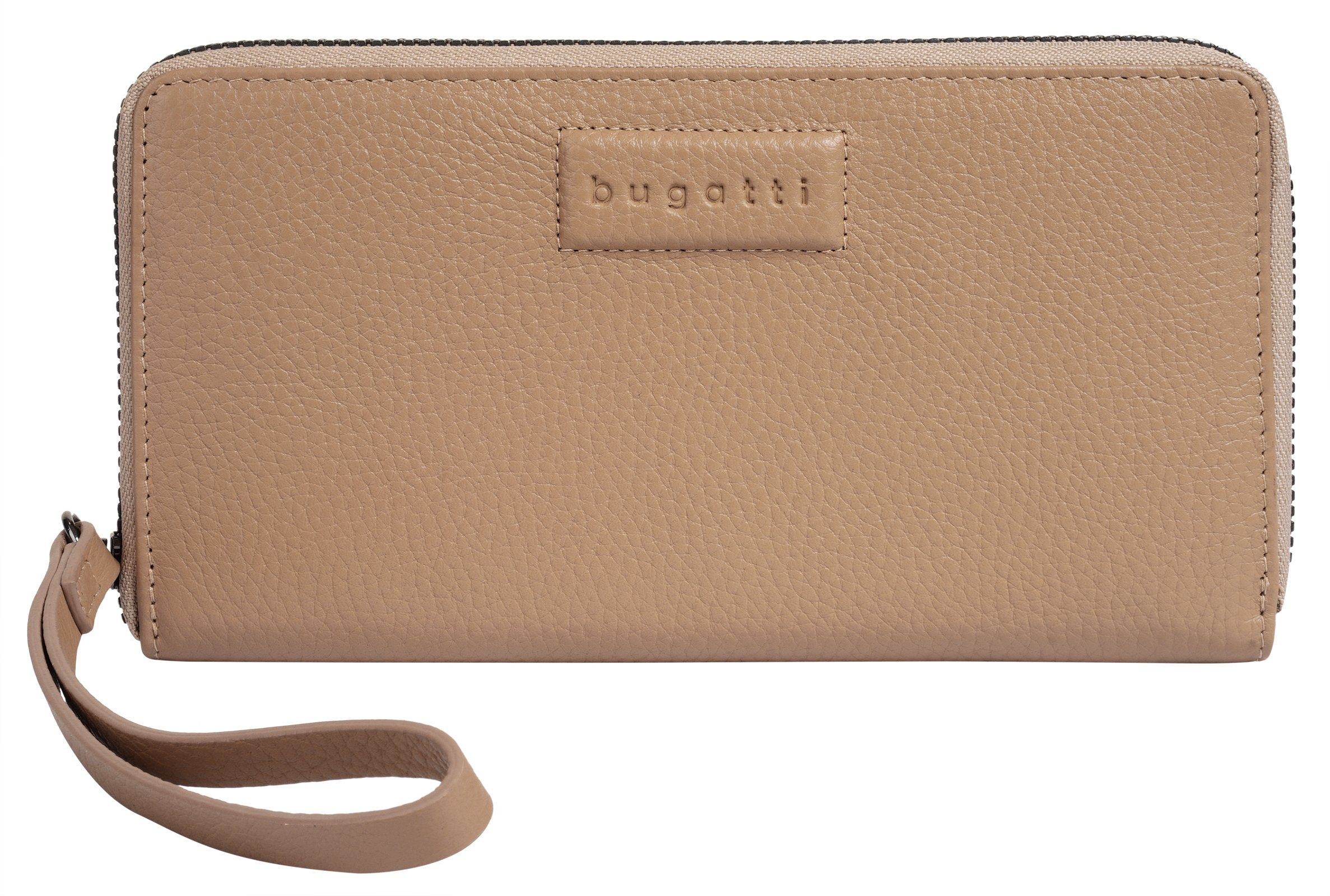 Überzeugen Sie sich selbst von der zeitlosen Leder Geldbörse aus dem Hause bugatti! Dank insgesamt 8 Kartenfächern sowie 3 Steckfächern behalten Sie den Überblick über Ihre Finanzen. Zudem schützt die integrierte RFID-Folie gegen nicht autorisiertes Auslesen Ihrer privaten Kartendaten. Das Rückfach mit Reißverschluss ist perfekt für den Einkaufswagenchip. An einer praktischen Handgelenkschlaufe können Sie Ihr Portemonnaie sicher bei sich tragen. Ein umlaufender Reißverschluss hält alles sicher zusammen.