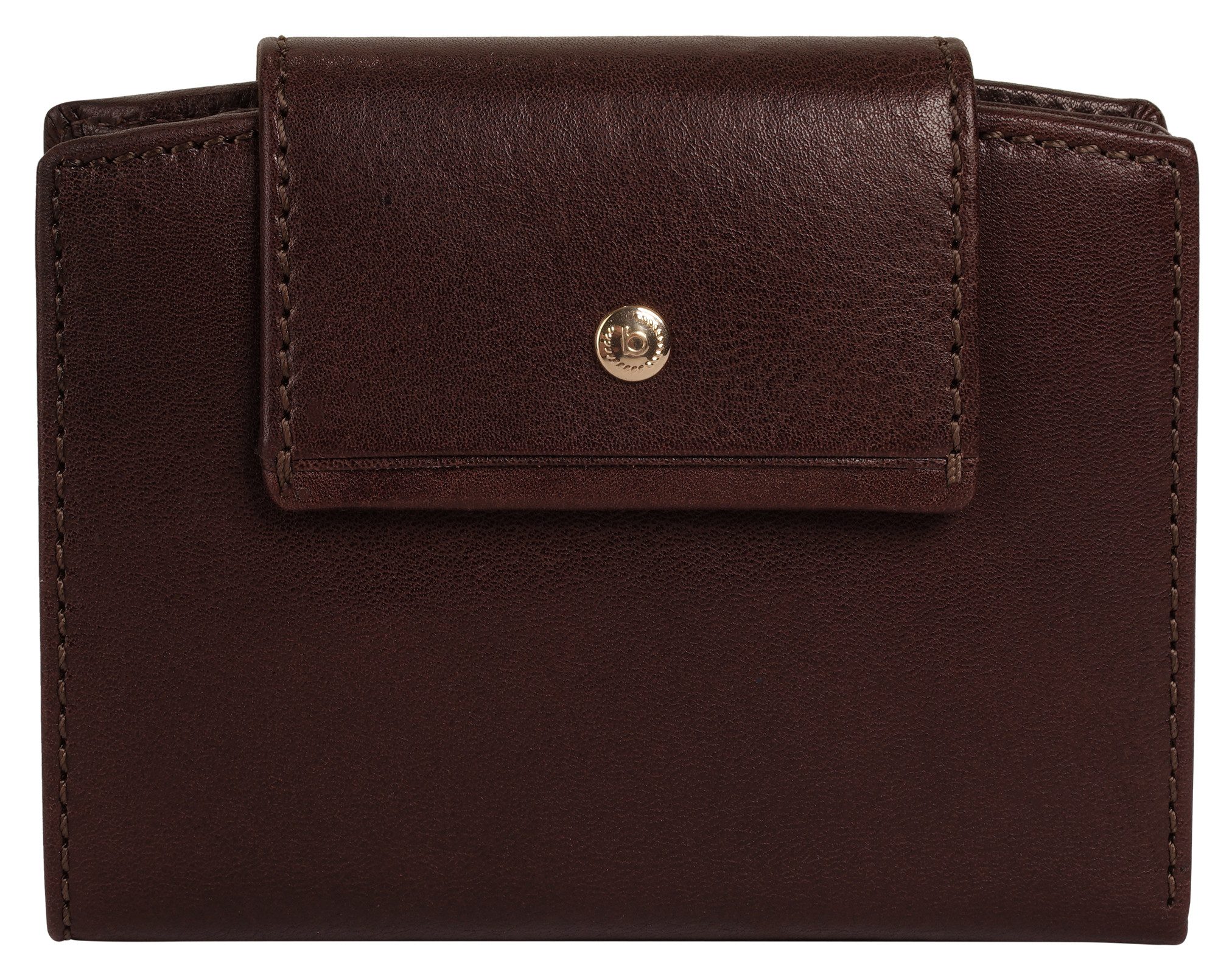 * 100 % Rindleder * Höhe 9 cm x Breite 12 cm x Tiefe 2 cm * 1 Hauptfach mit doppeltem Druckknopfverschluss * 1 Münzfach mit Druckknopfverschluss * 2 Scheinfächer * 6 Kartenfächer * 6 Steckfächer * 1 Sichtfach * 2-fach klappbar * RFID-Schutz gegen nicht autorisierten Zugriff via Scan
