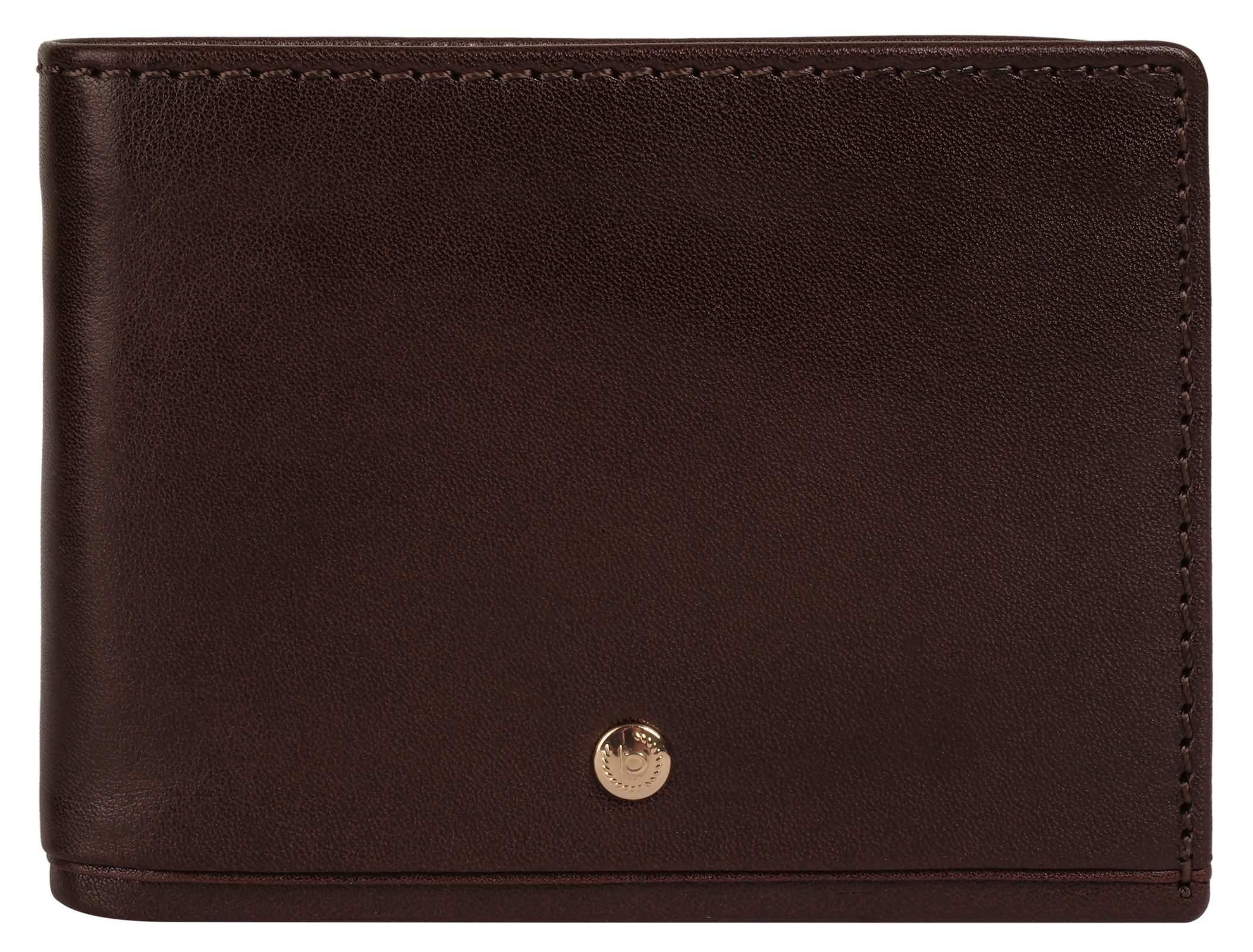 * 100 % Rindleder * Höhe 9 cm x Breite 12 cm x Tiefe 2 cm * 1 Hauptfach * 1 Münzfach mit Druckknopfverschluss * 2 Scheinfächer * 8 Kartenfächer * 5 Steckfächer * 1 Sichtfach * 2-fach klappbar * RFID-Schutz gegen nicht autorisierten Zugriff via Scan * Dezente Logoprägung vorne * Besonders leicht