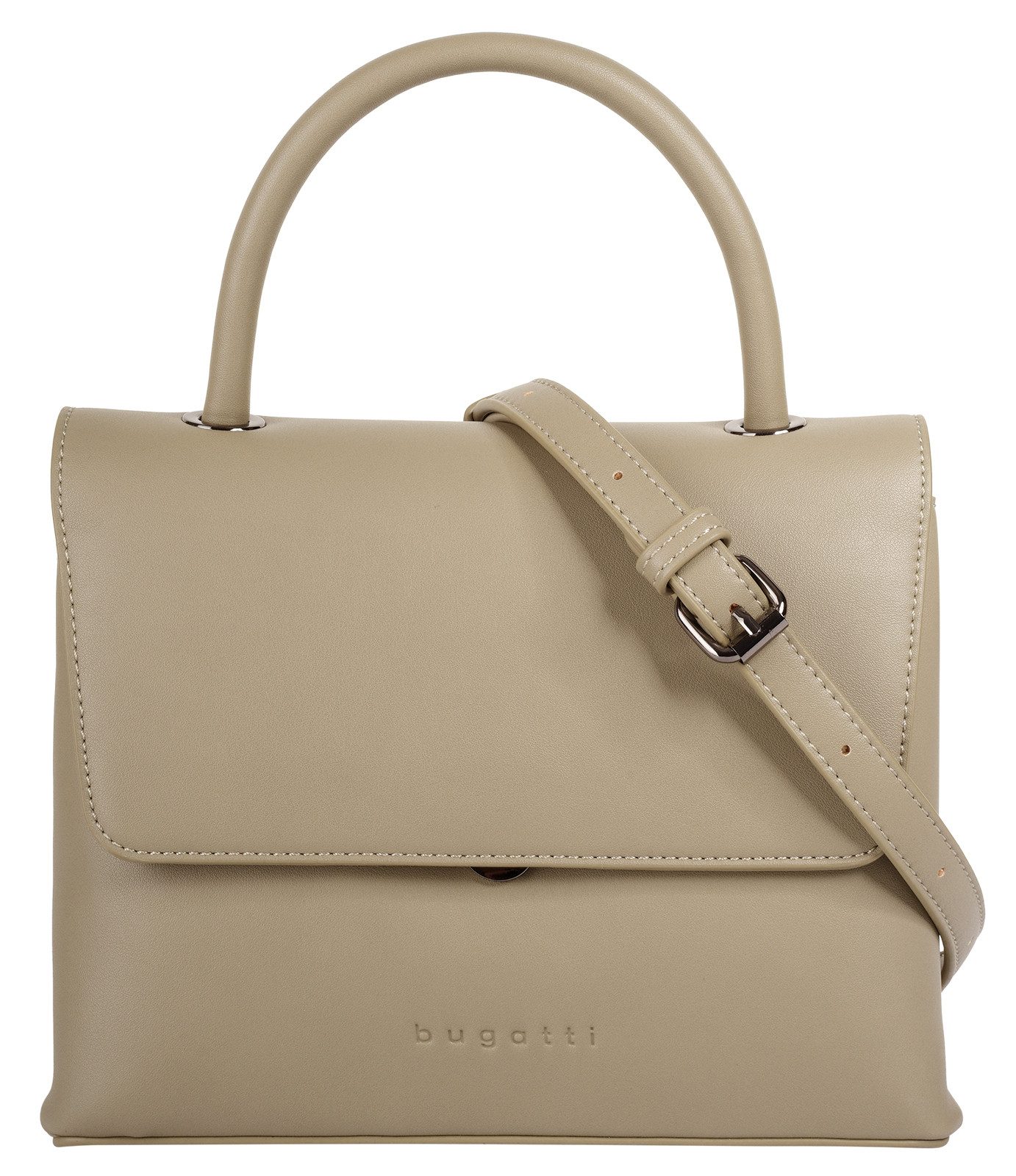 Schlicht, elegant, unwiderstehlich: die Handtasche von bugatti. Mit ihr wird jedes Outfit zum Runway-Look! Das Steckschloss sieht edel aus und hält das Hauptfach sicher verschlossen. Im Inneren finden Sie neben verschiedenen Einsteckmöglichkeiten auch eine herausnehmbare Innentasche. Ausgezeichnet, um Ihren Tascheninhalt zu organisieren und hervorragend geeignet als Kosmetiktasche. Für mehr Variation beim Tragen können Sie zwischen einem festen Henkel und einem abnehmbaren Schultergurt wechseln. Besonders praktisch ist auch der verstärkte Boden, welcher Ihrer Tasche einen festen Stand verleiht.