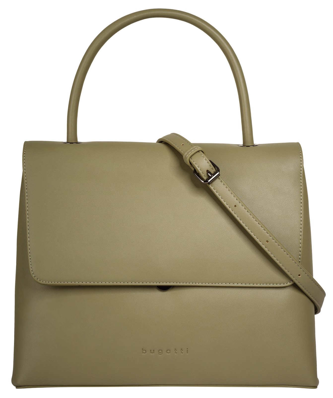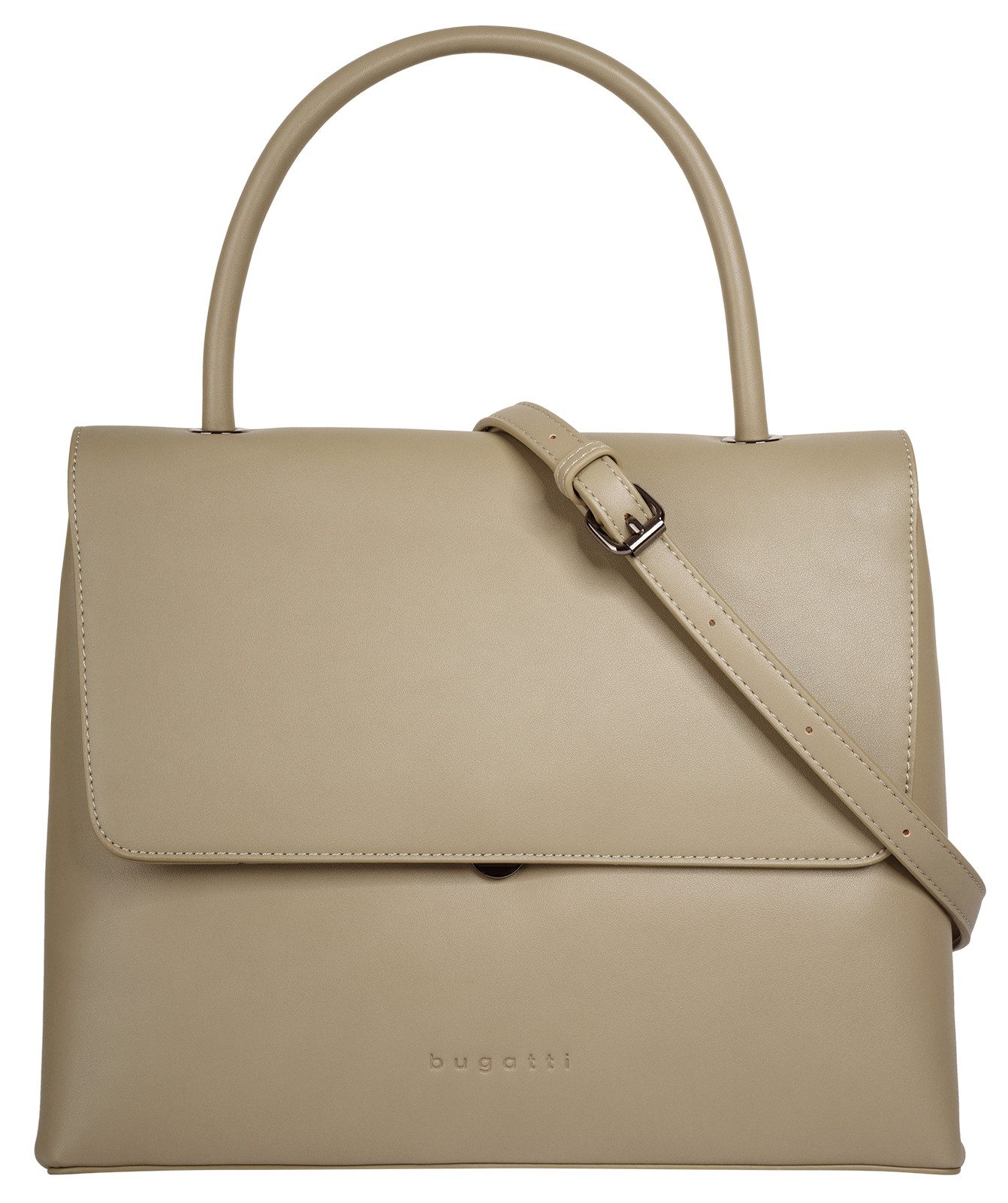 Sie ist schlicht, elegant, und unwiderstehlich: die Handtasche von bugatti! Setzen Sie Ihren Outfits mit diesen Statement Piece das modische Sahnehäubchen auf. Das Steckschloss fungiert dabei als edles Detail und hält die Tasche gleichzeitig sicher verschlossen. Das Hauptfach ist mit verschiedenen Einsteckmöglichkeiten ausgestattet, unter anderem einem Smartphonefach. So lassen sich wichtige Gegenstände geschützt und stets griffbereit verstauen. Das Highlight ist aber die verschließ- und herausnehmbare Innentasche, die sich hervorragend zur Organisation Ihres Tascheninhalts oder als Kosmetiktasche eignet. Wechseln Sie für maximalen Tragekomfort unterwegs zwischen festem Henkel und verstellbarem Schultergurt.