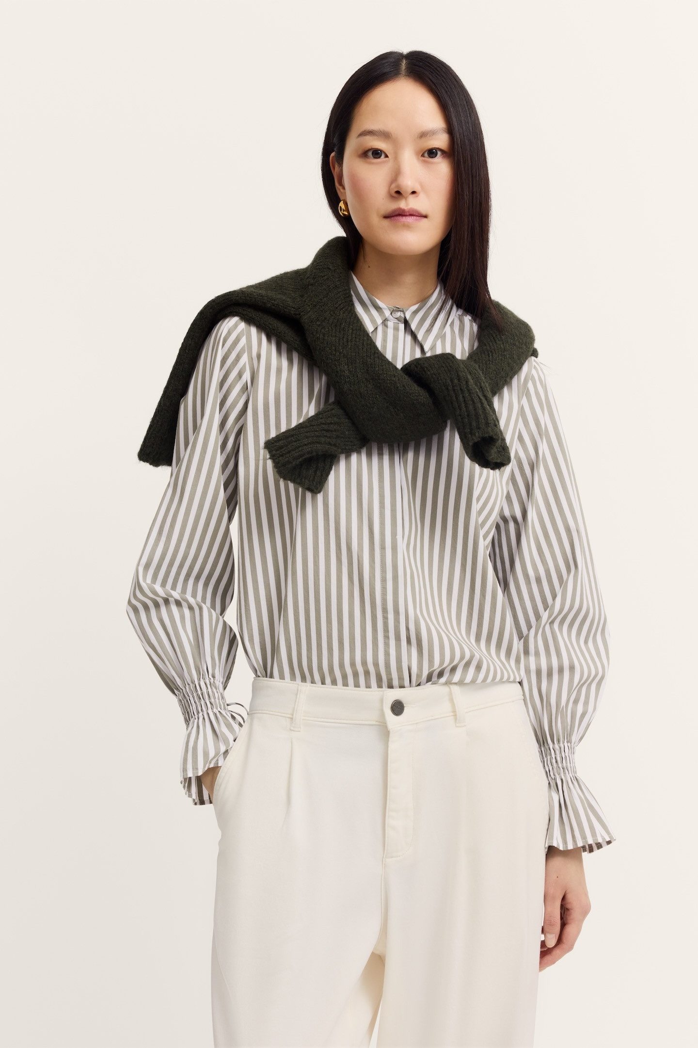Diese bugatti Freizeitbluse kombiniert feminine Details mit klassischer Lässigkeit und ist das perfekte Basic für deinen Alltag. Der normale Schnitt sorgt für eine bequeme Passform, die angenehm sitzt und dir Bewegungsfreiheit schenkt. Das feine Streifenmuster verleiht der Bluse eine zeitlos elegante Optik, die du vielseitig kombinieren kannst – ob zu Jeans, Chino oder Rock. Ein besonderes Highlight sind die gesmokten Details an den Manschetten, die dem Design eine dezente Verspieltheit verleihen und deinen Look individuell abrunden. Der klassische Hemdkragen bringt Struktur ins Outfit und sorgt für ein gepflegtes Erscheinungsbild, während die durchgehende Knopfleiste dir Flexibilität beim Styling bietet – offen getragen über einem Top oder geschlossen als Solo-Piece. Die Bluse ist aus reiner Baumwolle gefertigt, liegt weich auf deiner Haut und ist zugleich atmungsaktiv sowie pflegeleicht. Ob im Büro, beim Stadtbummel oder bei entspannten Freizeitmomenten – mit dieser Bluse bist du immer stilvoll angezogen. Wenn du Wert auf Qualität, Komfort und feine Details legst, ist diese bugatti Freizeitbluse genau die richtige Wahl für dich.