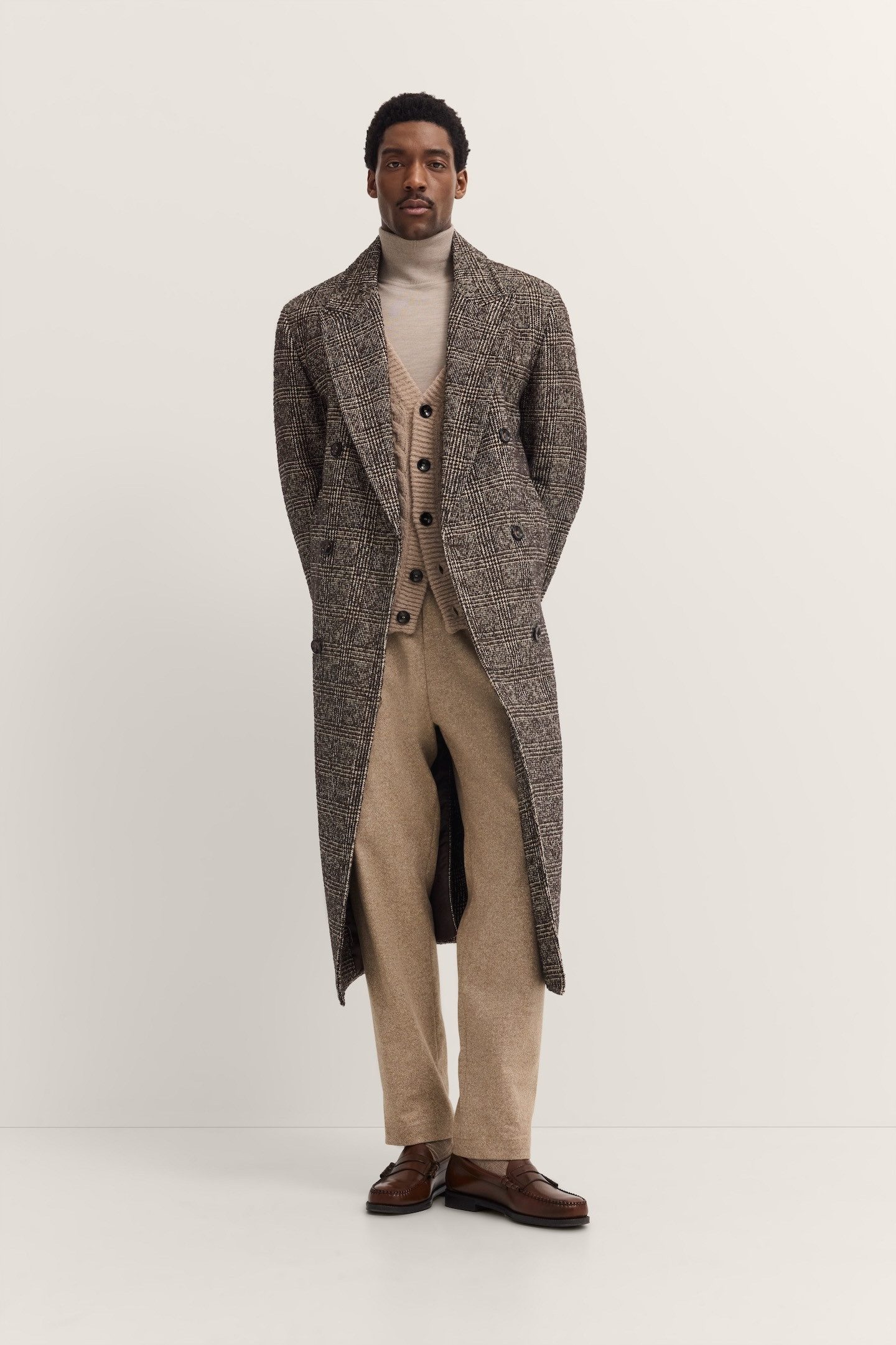 Dieser lange Mantel von bugatti bringt zeitlose Eleganz und modernen Komfort in deinen Kleiderschrank. Der Loose Fit sorgt für einen legeren, stilvollen Look, der auch bei kühleren Temperaturen genug Platz für wärmende Schichten darunter bietet. Das klassische Glencheck-Karo verleiht dem Mantel eine markante Optik, die sich perfekt zu Business-Outfits oder eleganten Freizeit-Looks kombinieren lässt. Die zweireihige Knopfleiste betont den maskulinen Charakter und rundet das Design mit dem gepflegten Reverskragen stilvoll ab. Zwei große Vordertaschen und eine praktische Innentasche bieten ausreichend Stauraum für Handy, Schlüssel und andere Essentials. Der hochwertige Materialmix aus Wolle, Polyacryl, Polyamid und Polyester sorgt für angenehme Wärme, ein weiches Tragegefühl und Formbeständigkeit – auch nach häufigem Tragen. Ob zu Anzughose und Hemd oder lässig zur Jeans – dieser Mantel macht deinen Auftritt in der kalten Jahreszeit perfekt. Wenn du Wert auf Qualität, zeitloses Design und komfortable Passform legst, ist dieser bugatti Mantel genau die richtige Wahl für dich.