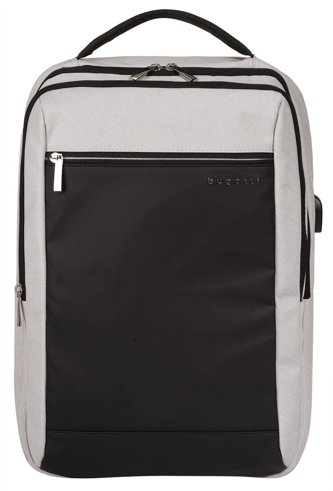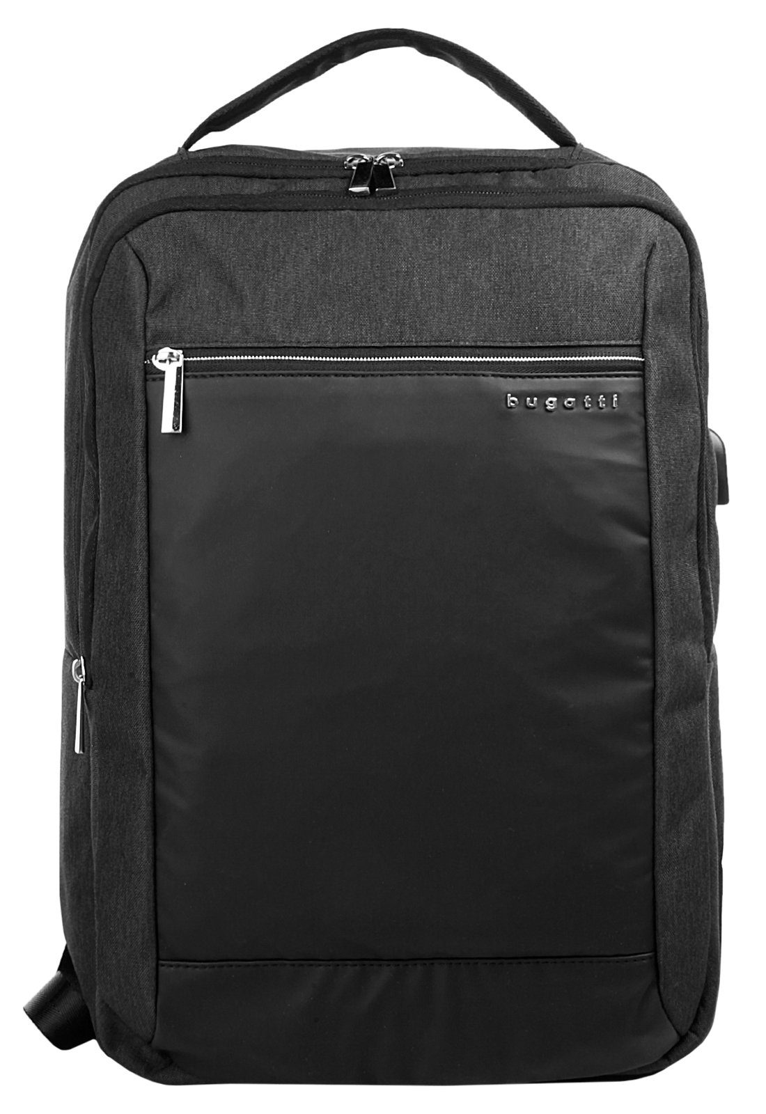 Der Business-Rucksack von bugatti fällt durch sein geringes Gewicht und modernes Design direkt ins Auge. Doch was ihn wirklich begehrenswert macht, sind seine zahlreichen nützlichen Funktionen. So ist zum Beispiel ein RFID-Schutz eingearbeitet, welcher das Auslesen Ihrer persönlichen Daten auf verhindert. Ein integrierter USB-Anschluss ermöglicht es, eine Akku-Powerbank (nicht enthalten) sicher im Inneren der Tasche zu verstauen, um damit ein außen angestecktes Smartphone zu laden. Unterteilt ist der Rucksack in zwei Hauptfächer, die unter anderem ein gepolstertes Notebookfach sowie zahlreiche Einsteckmöglichkeiten bereitstellen. Eine wahre Erleichterung für den Business-Alltag!