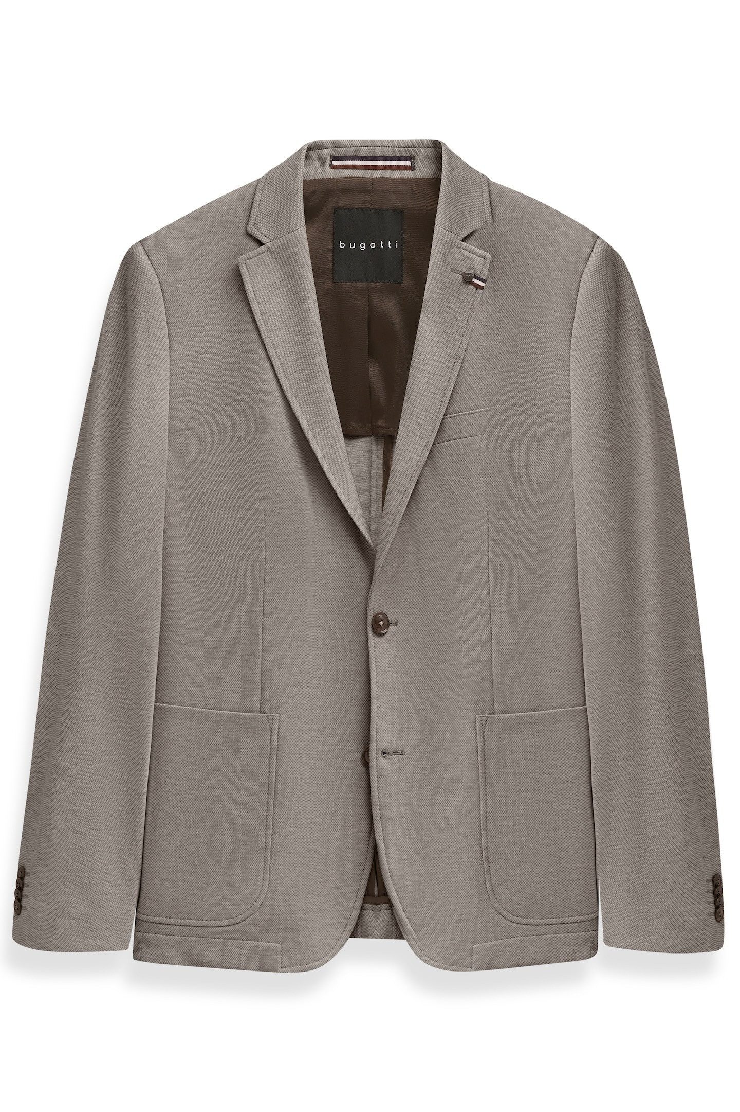 Dieses bugatti Sakko vereint modernen Stil mit hohem Tragekomfort und ist der perfekte Begleiter für Business und Freizeit. Der Modern Fit sorgt für eine schlanke, maskuline Silhouette, die gepflegt wirkt und angenehm sitzt. Das hochwertige Jersey-Material mit Stretch-Anteil macht das Sakko besonders elastisch und bietet dir volle Bewegungsfreiheit – ideal für lange Tage im Büro oder aktive Momente unterwegs. Der klassische Reverskragen verleiht deinem Outfit eine zeitlose Eleganz, während die aufgesetzten Taschen und die Brusttasche praktische Akzente setzen und für Stauraum sorgen. Innenfächer bieten dir zusätzlichen Platz für Visitenkarten, Smartphone oder andere Essentials. Der edle Materialmix aus Polyester, Viskose, Wolle, Polyamid und Elasthan fühlt sich angenehm weich an, ist atmungsaktiv und pflegeleicht. Ob zu Jeans für einen smarten Casual-Look oder kombiniert mit Chino und Hemd für geschäftliche Anlässe – dieses Sakko passt sich deinem Stil flexibel an und sorgt immer für einen souveränen Auftritt. Wenn du Wert auf Qualität, Bewegungsfreiheit und stilvolles Design legst, ist dieses bugatti Sakko genau die richtige Wahl für dich.