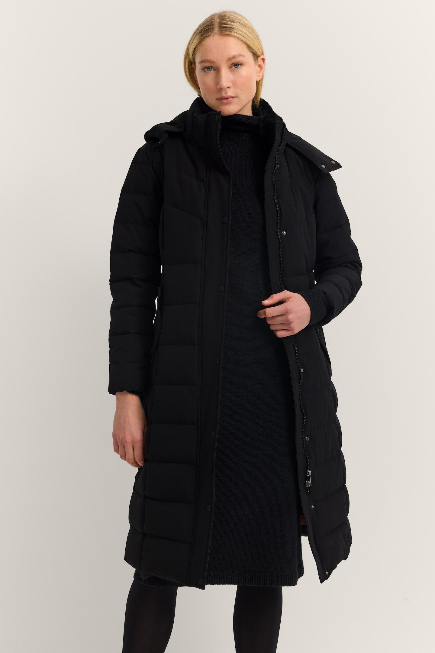 Dieser bugatti Steppmantel verbindet zeitlose Eleganz mit praktischer Funktionalität und begleitet dich stilvoll durch Herbst und Winter. Der Regular Fit sorgt für eine bequeme, feminine Passform, die zu jedem Outfit passt und dir viel Bewegungsfreiheit schenkt. Das elastische Material aus Polyester-Elasthan ist angenehm leicht, hält dich zuverlässig warm und bleibt auch nach häufigem Tragen formstabil. Ein besonderes Highlight ist die abnehmbare Kapuze mit abknöpfbarem Kunstfellkragen, die du je nach Wetter und Anlass flexibel anpassen kannst. Der hohe Stehkragen schützt deinen Hals vor Wind und Kälte, während der robuste Reißverschluss schnelles An- und Ausziehen ermöglicht. Zwei Vordertaschen und eine praktische Innentasche bieten dir genügend Platz für deine wichtigsten Dinge wie Handy, Schlüssel oder Geldbörse. Ob zu Jeans, Rock oder Business-Outfit – dieser Steppmantel passt immer und verleiht deinem Look eine gepflegte, moderne Ausstrahlung. Wenn du Wert auf Qualität, Funktionalität und zeitloses Design legst, ist dieser bugatti Mantel genau die richtige Wahl für dich.