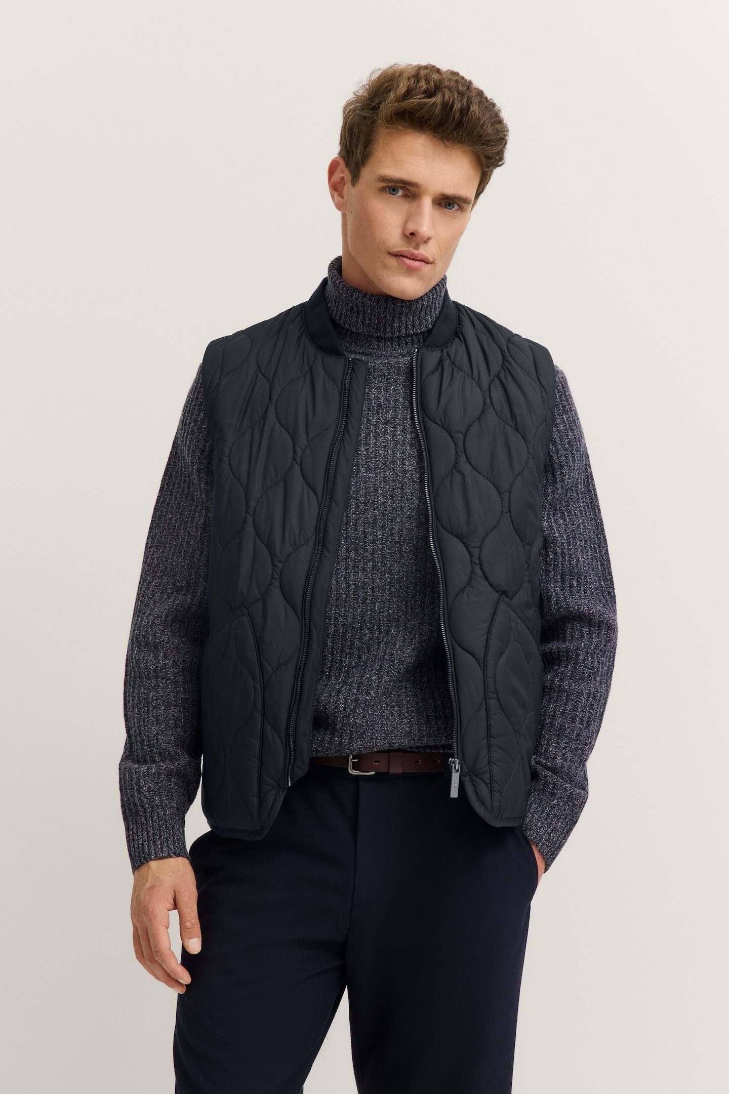 Diese bugatti Steppweste aus der Airseries kombiniert modernes Design mit praktischer Funktion und ist der perfekte Begleiter für Übergangszeiten. Ihr Regular Fit sorgt für eine bequeme Passform, die dir viel Bewegungsfreiheit lässt, egal ob du sie in der Freizeit oder auf dem Weg ins Büro trägst. Die innovative Airseries-Qualität steht für ultraleichte Materialien und ein pflegeleichtes Handling – so bleibt die Weste auch nach häufigem Tragen und Waschen formstabil und ansprechend. Die Wellensteppung verleiht der Weste eine sportive, zeitgemäße Optik, die deinen Look stilvoll abrundet. Ein robuster Reißverschluss ermöglicht unkompliziertes An- und Ausziehen, während der Collegekragen für einen lässigen, gepflegten Akzent sorgt. Zwei aufgesetzte Taschen bieten dir praktischen Stauraum für Smartphone, Schlüssel oder andere Kleinigkeiten, und in der Innentasche kannst du Wertvolles sicher verstauen. Das hochwertige Polyester-Material trägt sich angenehm leicht und ist zugleich strapazierfähig. Ob zu Jeans, Chino oder sportiver Jogpants – diese Steppweste lässt sich vielseitig kombinieren und macht jedes Outfit komplett. Wenn du Wert auf Komfort, Stil und unkomplizierte Pflege legst, ist diese bugatti Weste genau das Richtige für dich.