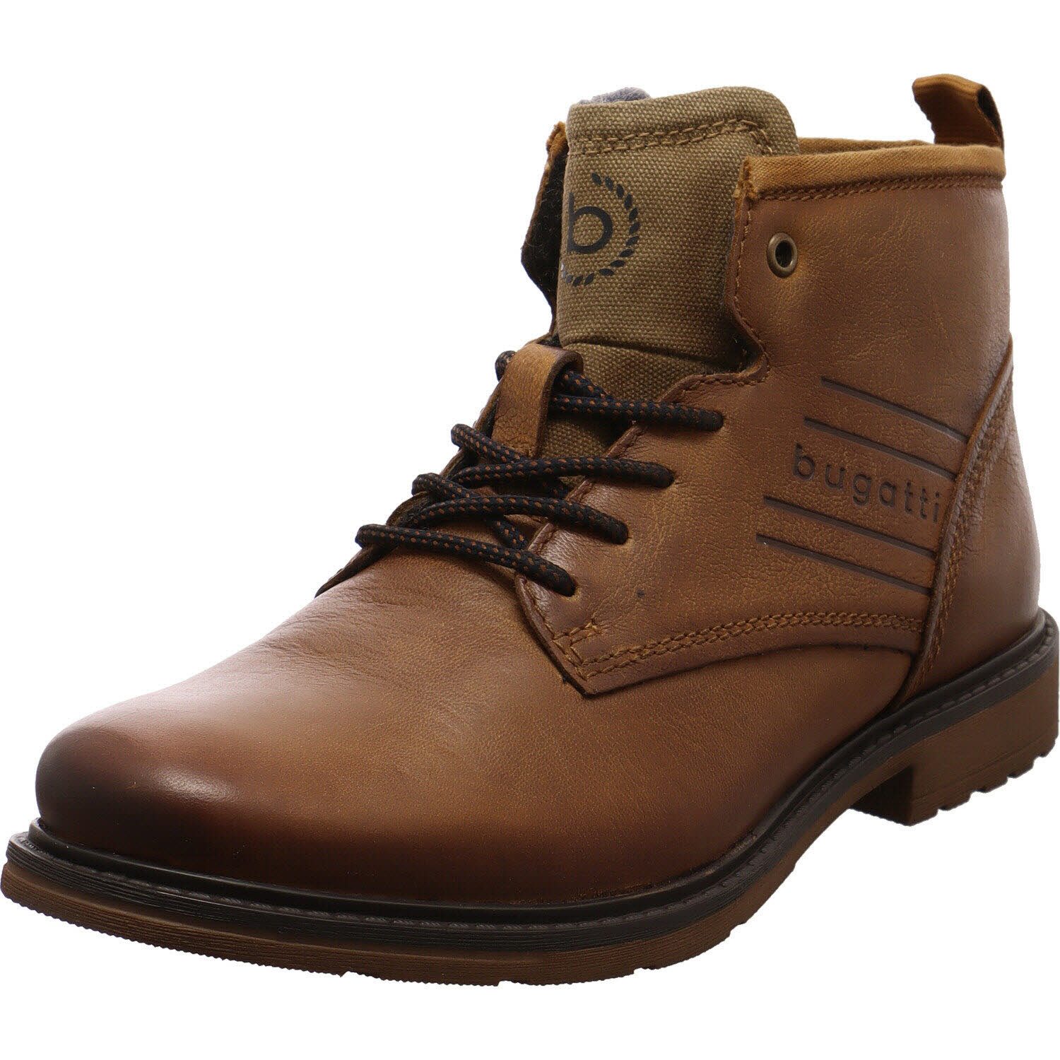 Eine tolle Herren Schnürstiefelette für jede Gelegenheit, ist das Modell Vandal von Bugatti. Sie wurde aus weichem, hochwertigen Echtleder in Cognac Braun gefertigt und begeistert durch ihren Used Look. Hingucker sind dabei, das Markenlogo an der eite und die Zunge aus Textil im Denim Look. Durch den seitlichen Reißverschluss ist der Einstieg ganz leicht un dmit der Schnürung kann sie optimal an den Fuß angepasst werden. Der Winterstiefel ist mit einer angerauten Fütterung versehen, damit du auch an kalten Herbst und Winter Tagen nicht so schnell kalte Füße bekommst. Die Laufsohle mit Blockabsatz hat einen guten Grip und gibt Halt. Ein toller Schuh für den Alltag.