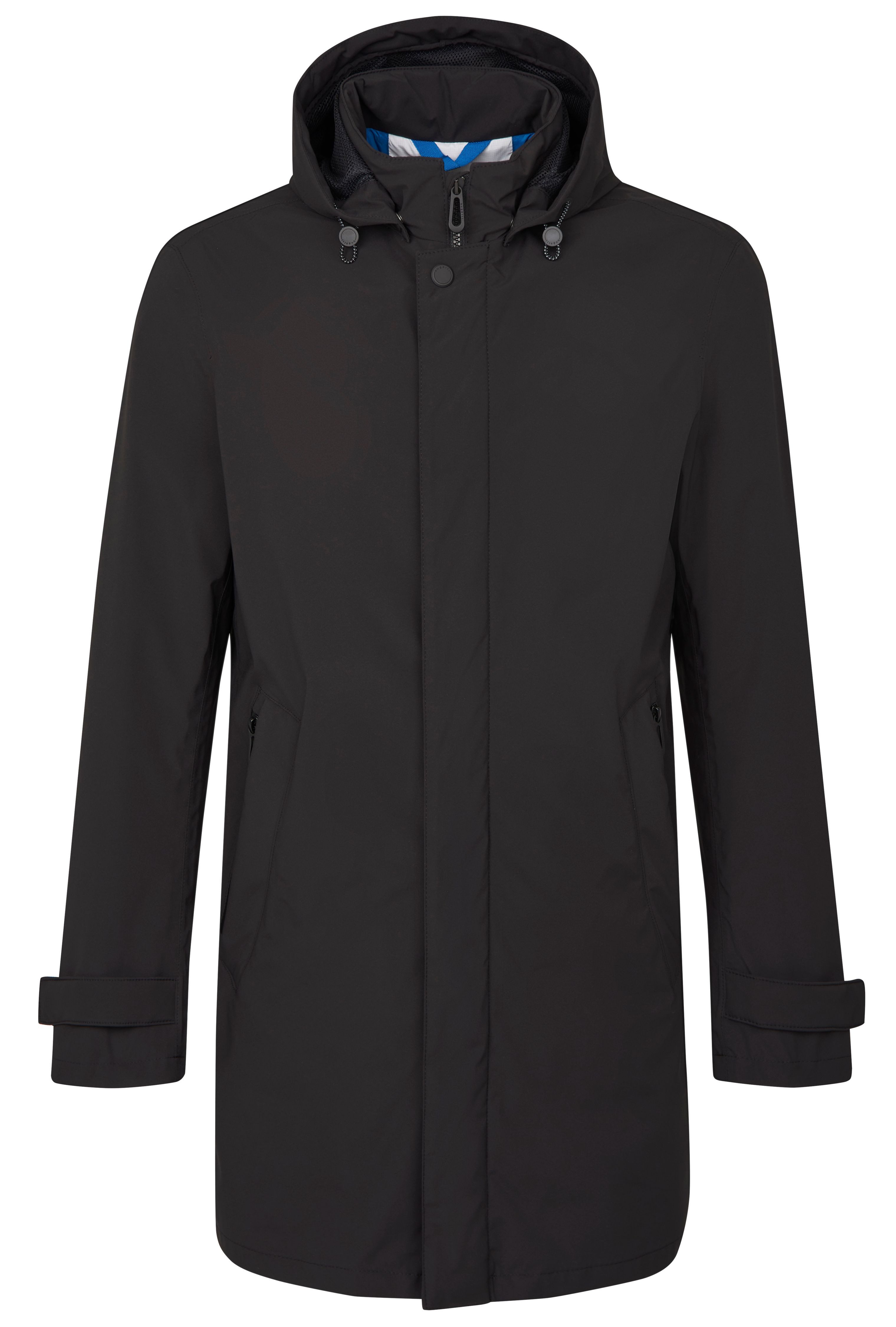 Sportlicher Stehkragenmantel mit abnehmbarer Kapuze, schrägen Reißverschlusstaschen und angeschnittener Blende sowie Armriegel. Die maritime Vollfütterung spielt Innen mit farblichen Akzenten an Taschen und Transferen. Das Modell ist durch die verschweißten Nähte wasser- sowie winddicht und gleichzeitig atmungsaktiv. Der Artikel mit stretch-Funktion überzeugt mit seiner wasserfesten Eigenschaft aufgrund seiner 5000er Wassersäule (5000 mmH2O) und ist zugleich PFC frei.