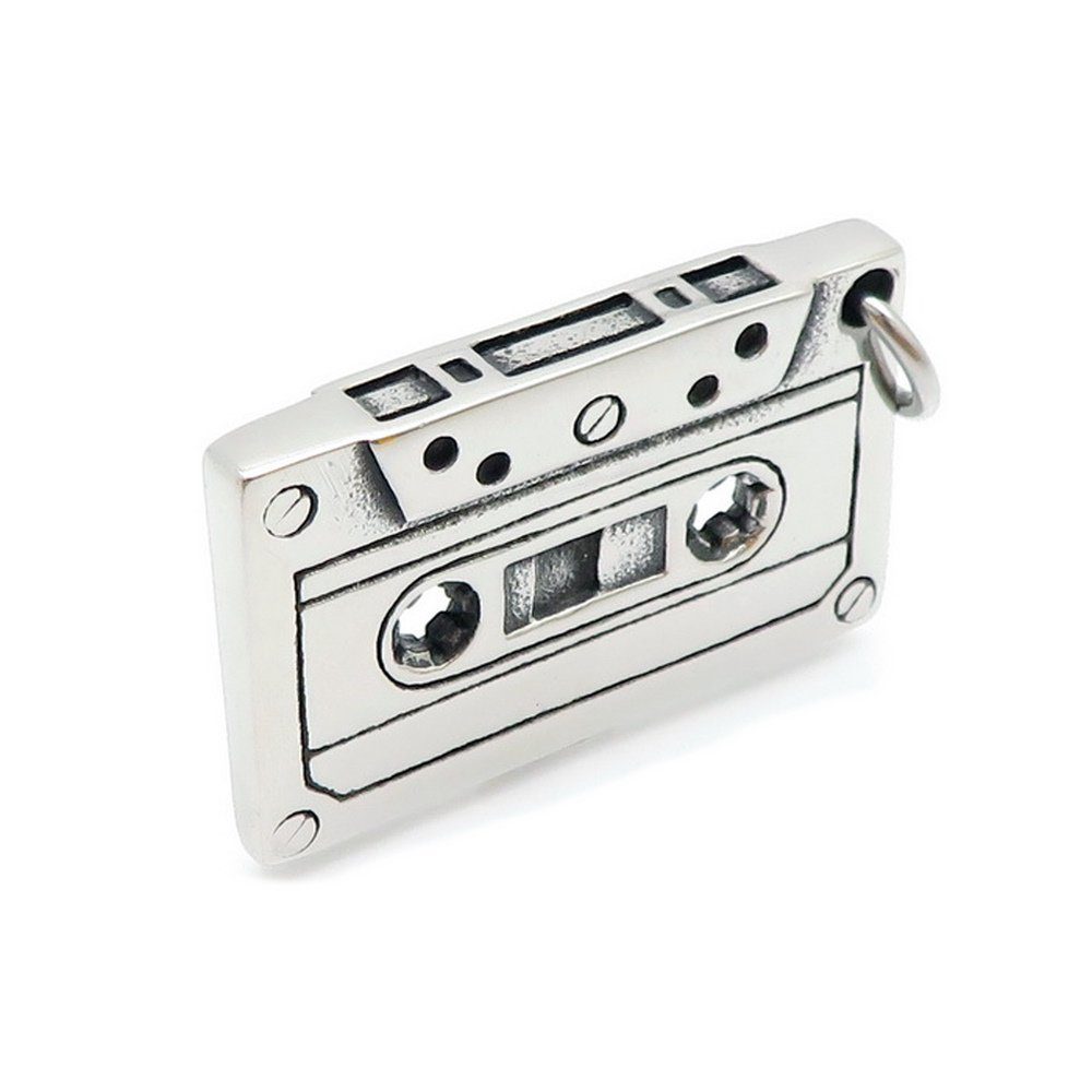 Nostalgisch: Kettenanhänger in Form einer Musikkassette aus Edelstahl