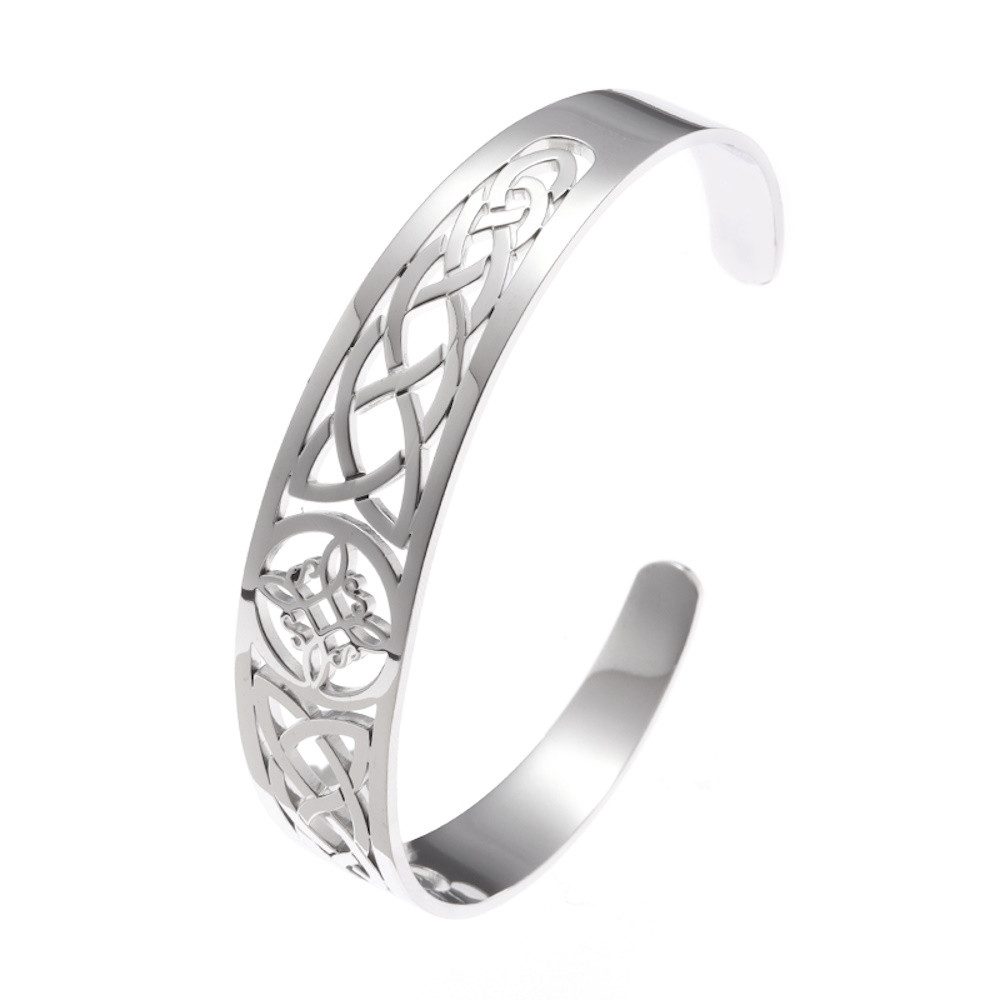 Damen-Armreifen mit Keltenknoten aus hochwertigem 316L Edelstahl - wählbar in 3 Farben (gold, silber, schwarz). Der hochwertige Edelstahl-Armreif ist bestens für Всеrgiker geeignet.