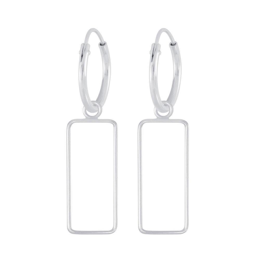 Damen-Creolen aus echtem Sterling-Silber mit klassischem Verschluss. Die glamourösen Ohrringe sind mit einem auffälligen Vierecks-Charm veredelt und in drei Farbvarianten erhältlich. Ein traumhaftes Schmuck-Basic für viele Gelegenheiten!