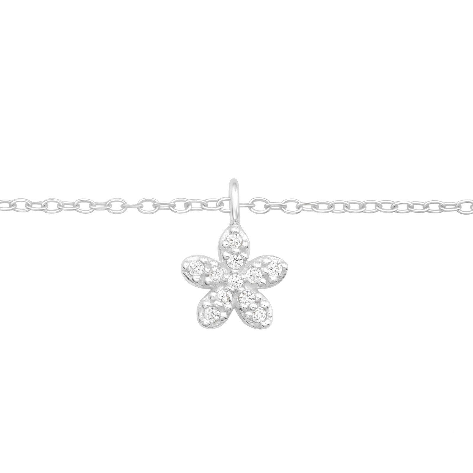 Edles .925 Echtsilber Anklet mit kristallbesetzter Blüte als Glücksbringer für jeden Anlass