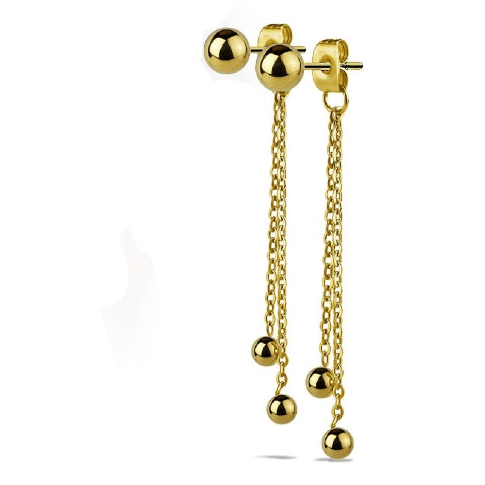 Rockige Ohrstecker mit Ketten und Kugeln aus robustem Edelstahl - für einen coolen und trendigen Look - Erhältlich in den Farben Gold, Rosegold und Silber