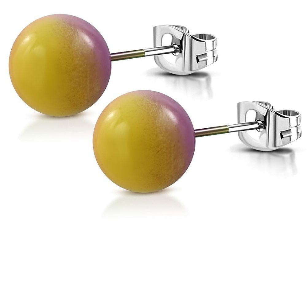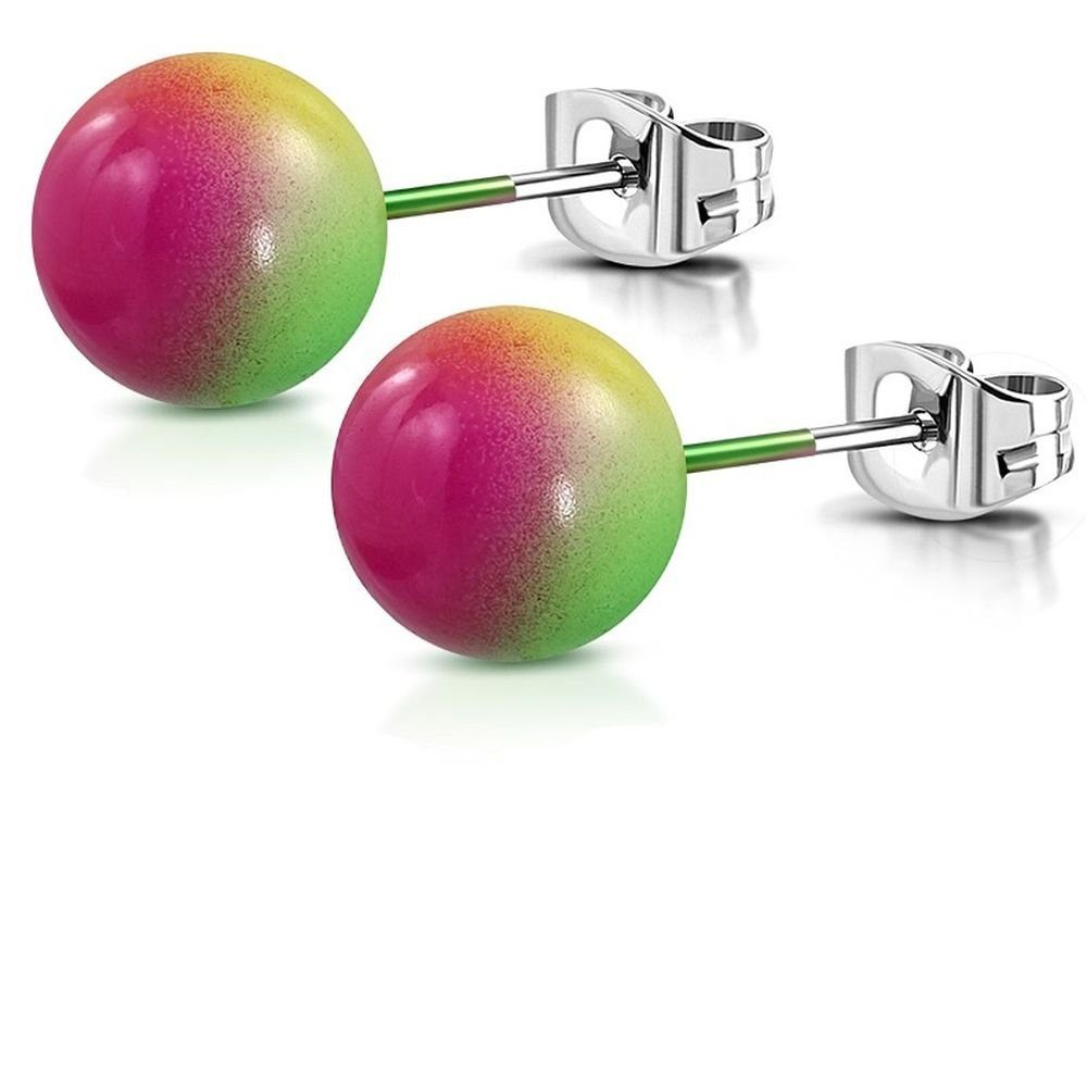 Durchmesser: 8 mm | Farbe: pink-grün-gelb oder gelb-rosa-lila | Lieferumfang: 1 Paar (= 2 Ohrstecker)