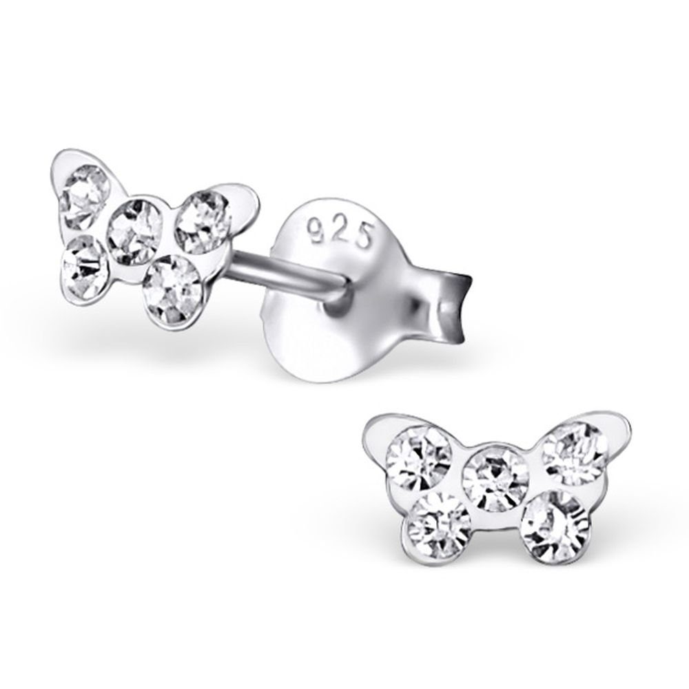 Hochwertige Ohrstecker für Kinder in Schmetterlingsform mit strahlenden Kristallsteinchen veredelt