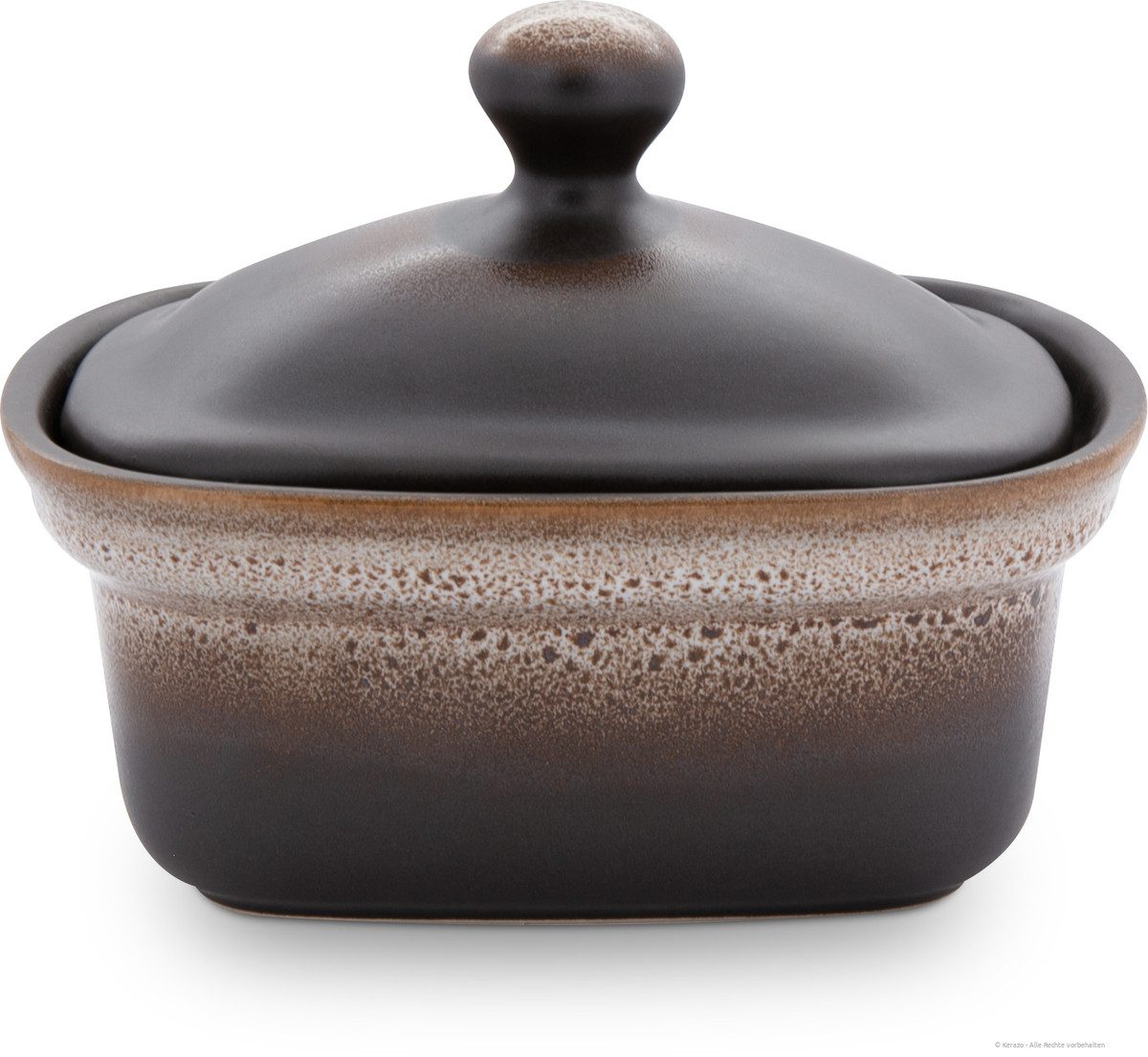 Diese formschöne Keramikdose wurde speziell für die Aufbewahrung von Margarine oder Butter entwickelt und fasst etwa 250 g Inhalt. Dank ihrer praktischen Maße eignet sie sich hervorragend für handelsübliche Margarineverpackungen, kann aber ebenso gut für Butterstücke oder andere streichfähige Aufstriche verwendet werden. Der stabile Deckel liegt passgenau auf und schützt den Inhalt zuverlässig vor äußeren Einflüssen.