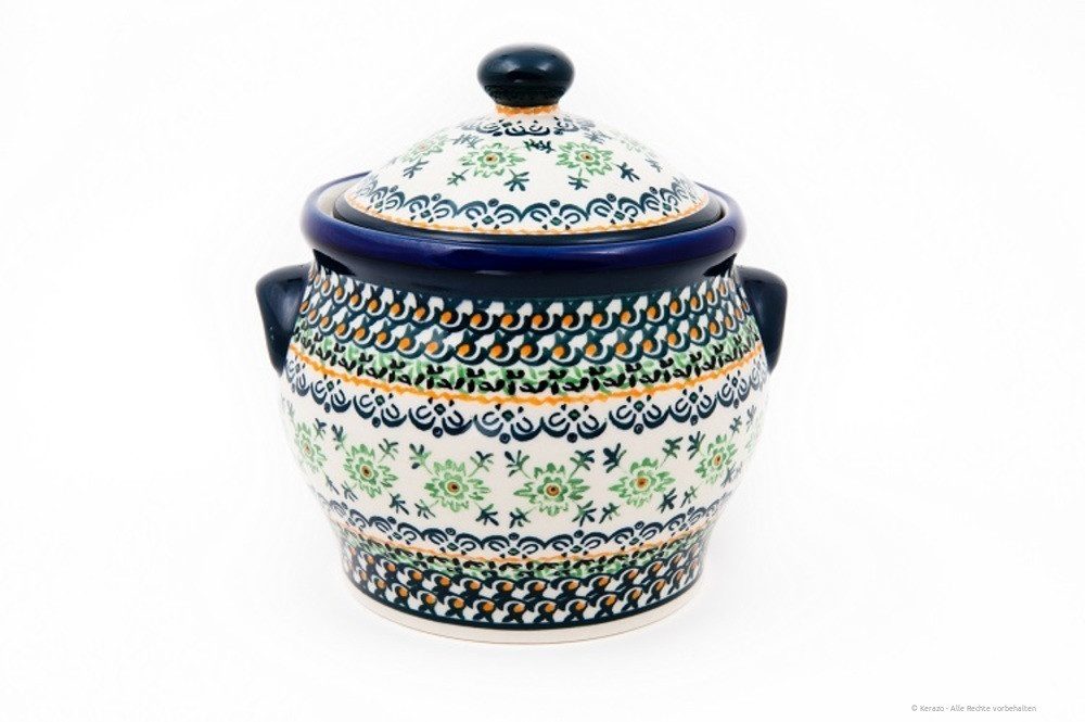 Jeder Topf wird in traditioneller Handarbeit in einer renommierten Bunzlauer Keramikmanufaktur gefertigt und trägt die charakteristische Schwämmeltechnik, die jedes Stück zu einem echten Unikat macht. Das liebevoll aufgetragene Dekor verleiht dem Topf seinen unverwechselbaren Charakter und bringt stilvolle Akzente in jede Küche.