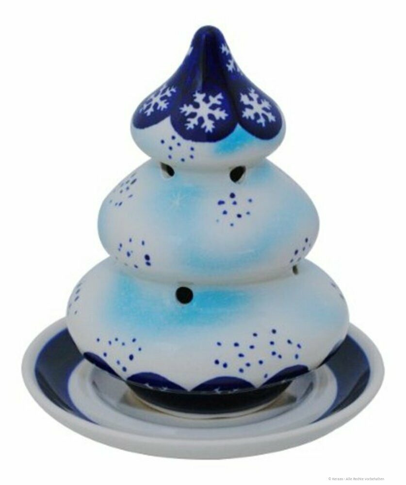 Winterlich einladend und wunderschön gestaltet ist dieser Tannenbaum Teelichthalter. Er verfügt über eine Höhe von 14,6 Zentimetern. Der Durchmesser beträgt 10,8 Zentimeter. Der Teelichthalter besteht aus hochwertiger Bunzlauer Keramik.