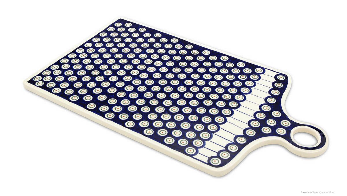 Die hochwertige Glasur macht das Brett besonders widerstandsfähig gegen Kratzer und Flecken, während die robuste Keramik für Langlebigkeit sorgt. Es ist lebensmittelecht, hitzebeständig und spülmaschinenfest – perfekt für den täglichen Gebrauch. Ob als Servierbrett für eine festliche Tafel, als große Schneideunterlage oder als elegante Präsentationsfläche für kulinarische Köstlichkeiten – dieses handgefertigte Unikat aus Bunzlauer Keramik verbindet Funktionalität mit traditioneller Handwerkskunst.