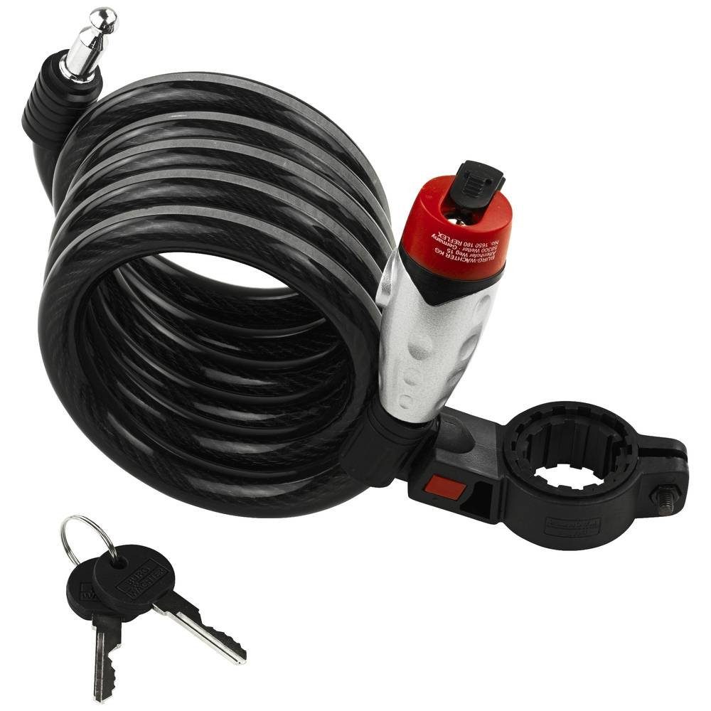 Eigenschaften | Kabel-Durchmesser: 15 mm · Kabellänge (Details): 1800 mm · Verschluss-Typ: Schlüsselschloss · Впередe technische Daten: Seil-Durchmesser: 15 mm Material: Kunststoff |