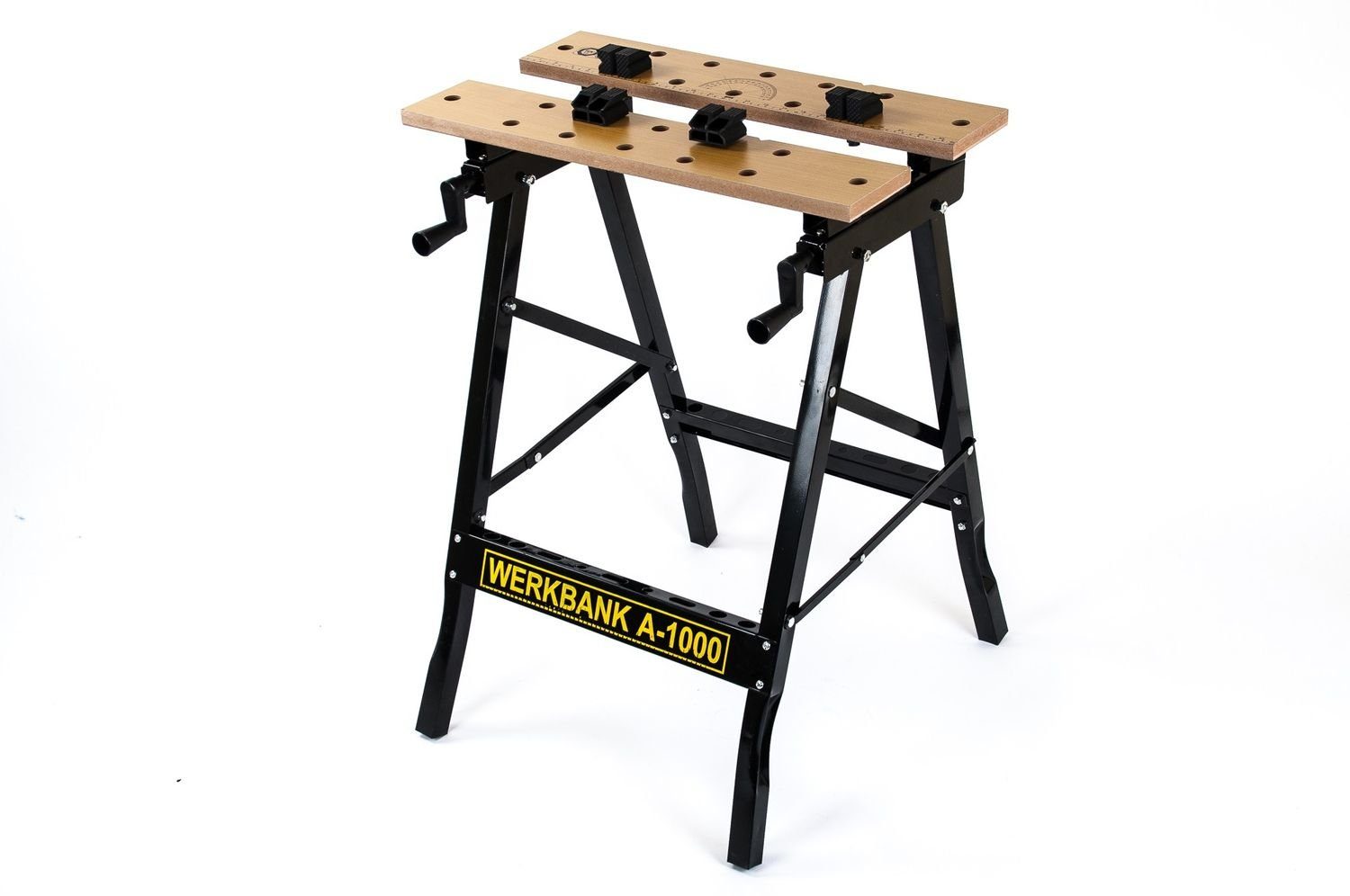 Platzsparend zusammenklappbarer Arbeitstisch für den Heimwerker.