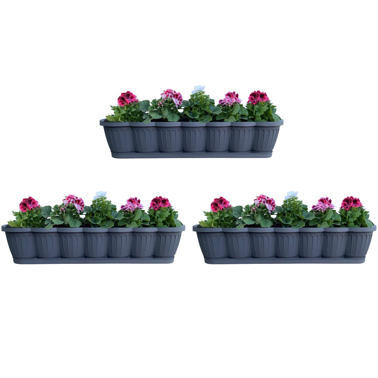 3er Set Blumenkästen aus Polypropylen Kunststoff in Anthrazit - ideal für Balkon, Terrasse oder Garten und perfekt zur stilvollen Bepflanzung mit Blumen, Kräutern oder kleinen