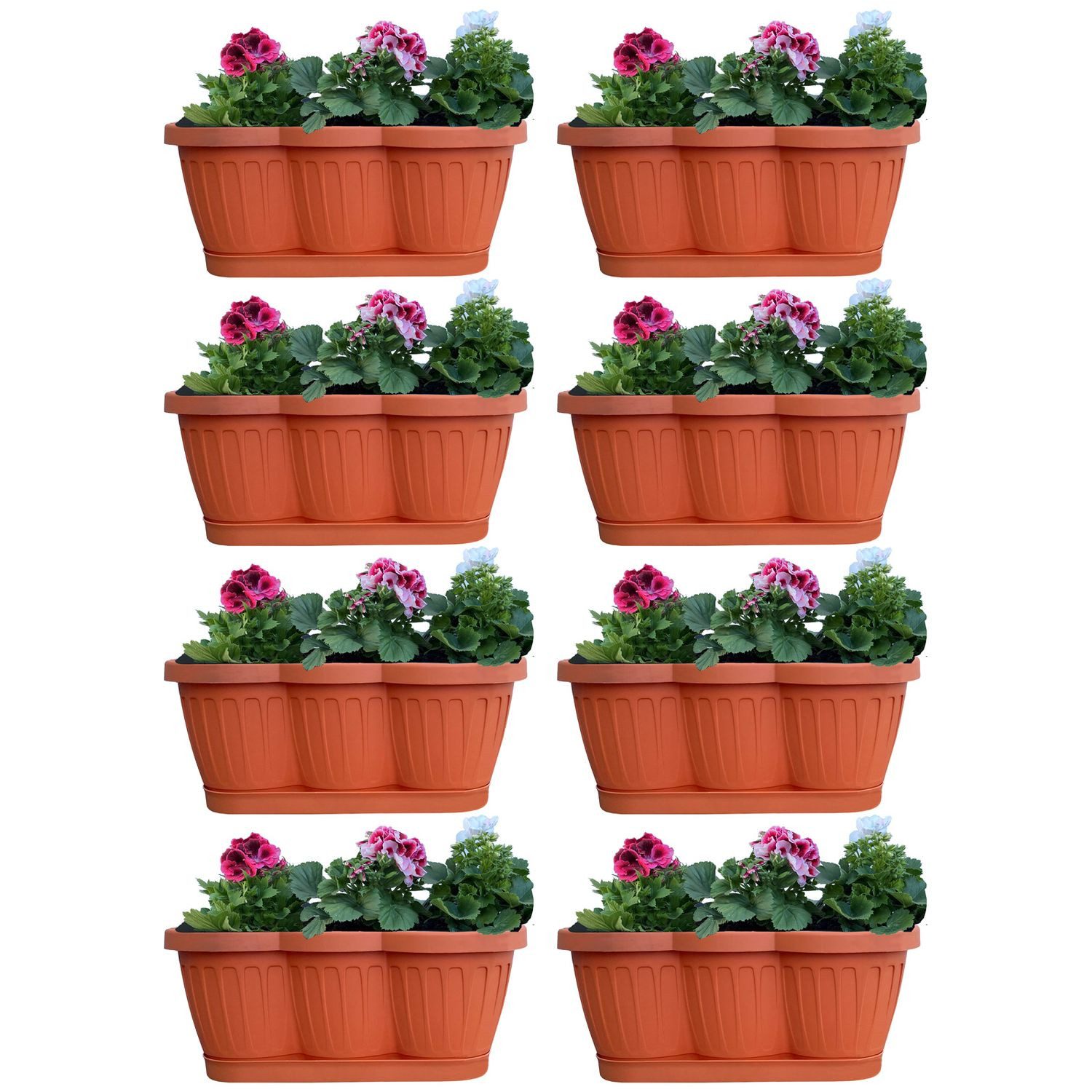 8er Set Blumenkästen aus robustem Polypropylen Kunststoff in Terracotta - ideal für Balkon, Terrasse oder Garten und perfekt zur stilvollen Bepflanzung mit Blumen, Kräutern oder