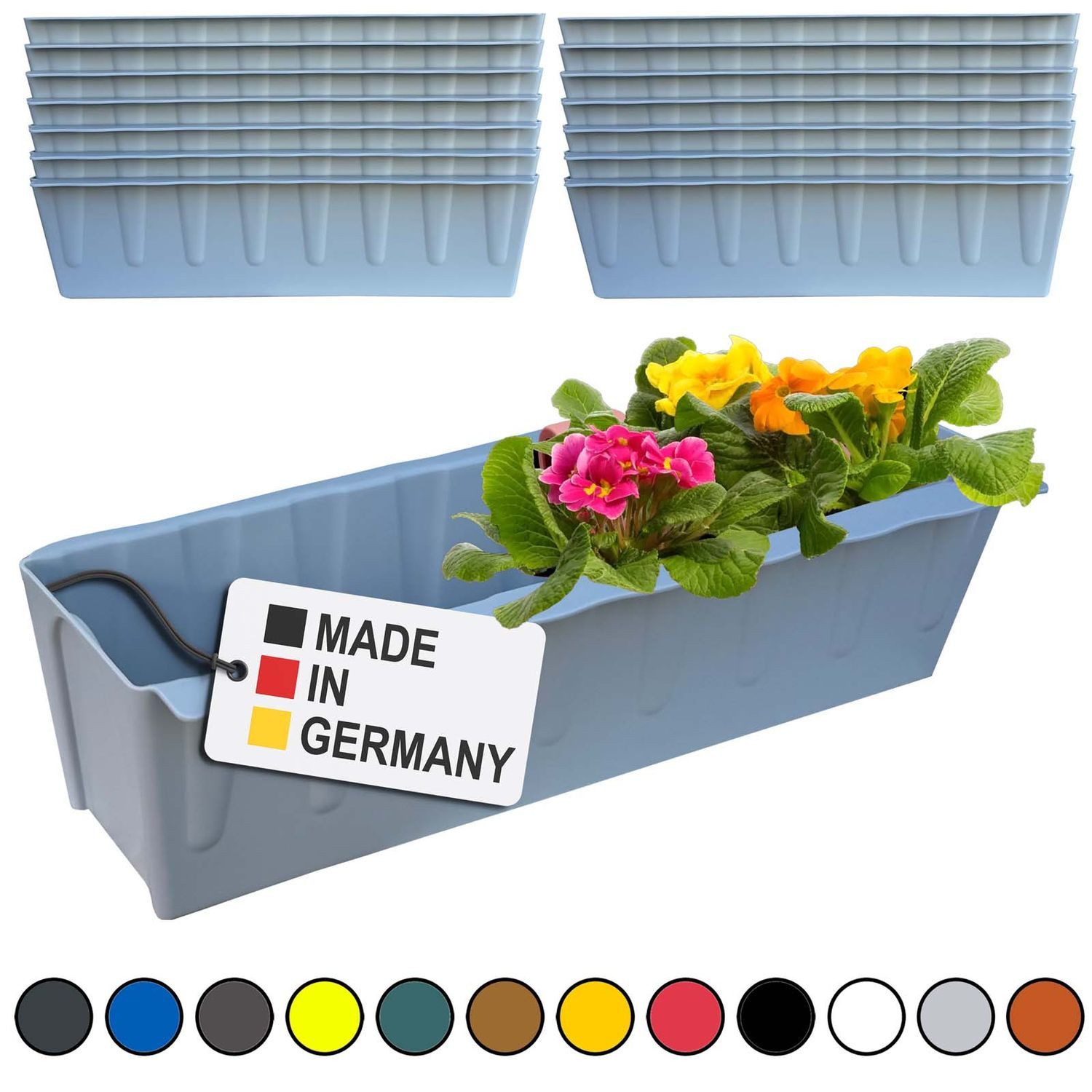 Unsere Blumenkästen zeichnen sich durch eine außergewöhnliche Stabilität aus und übertreffen vergleichbare Produkte in ihrer Robustheit. Sie halten Wind, Wetter und täglicher Nutzung mühelos stand und garantieren eine langfristige Einsatzfähigkeit!