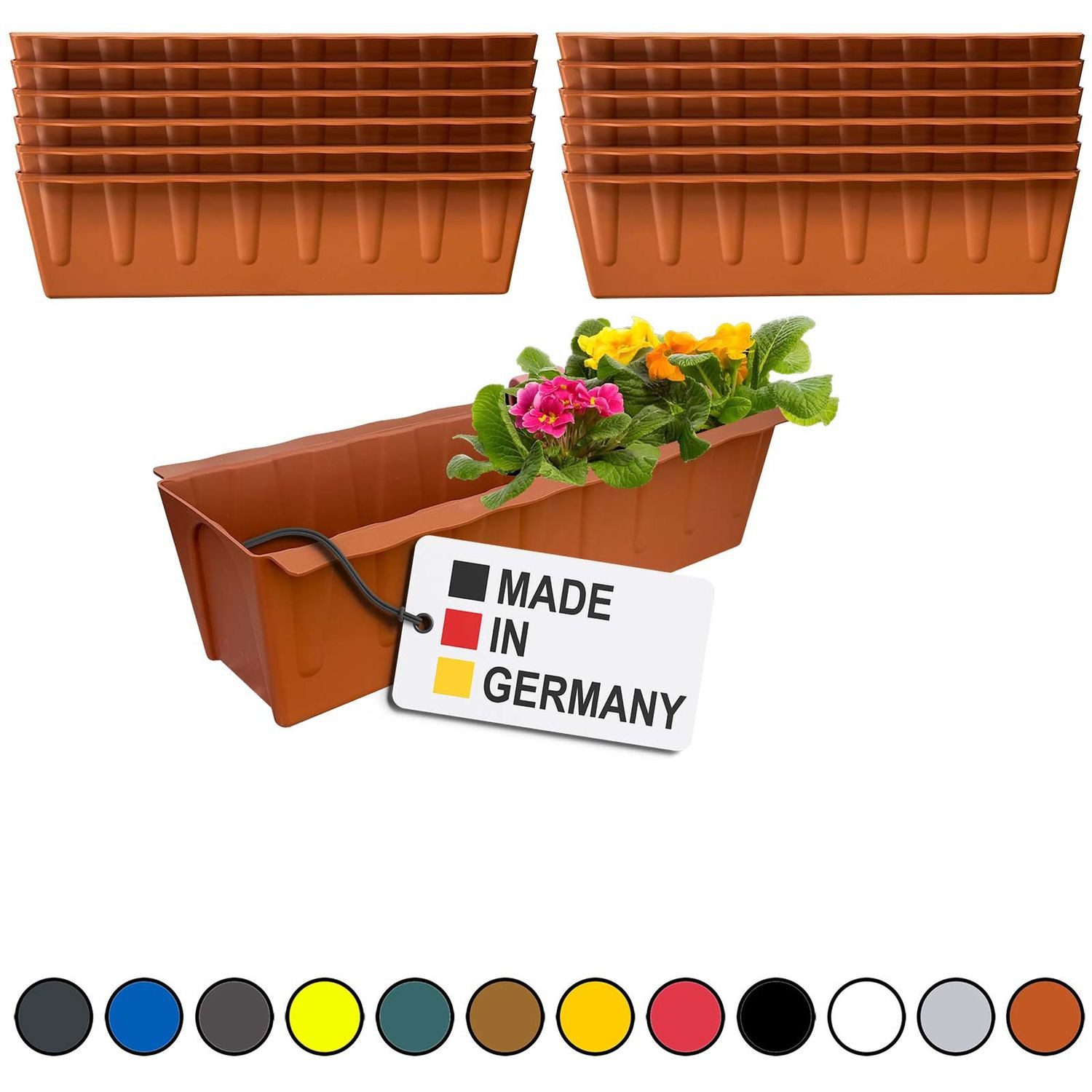 Unsere Blumenkästen zeichnen sich durch eine außergewöhnliche Stabilität aus und übertreffen vergleichbare Produkte in ihrer Robustheit. Sie halten Wind, Wetter und täglicher Nutzung mühelos stand und garantieren eine langfristige Einsatzfähigkeit!