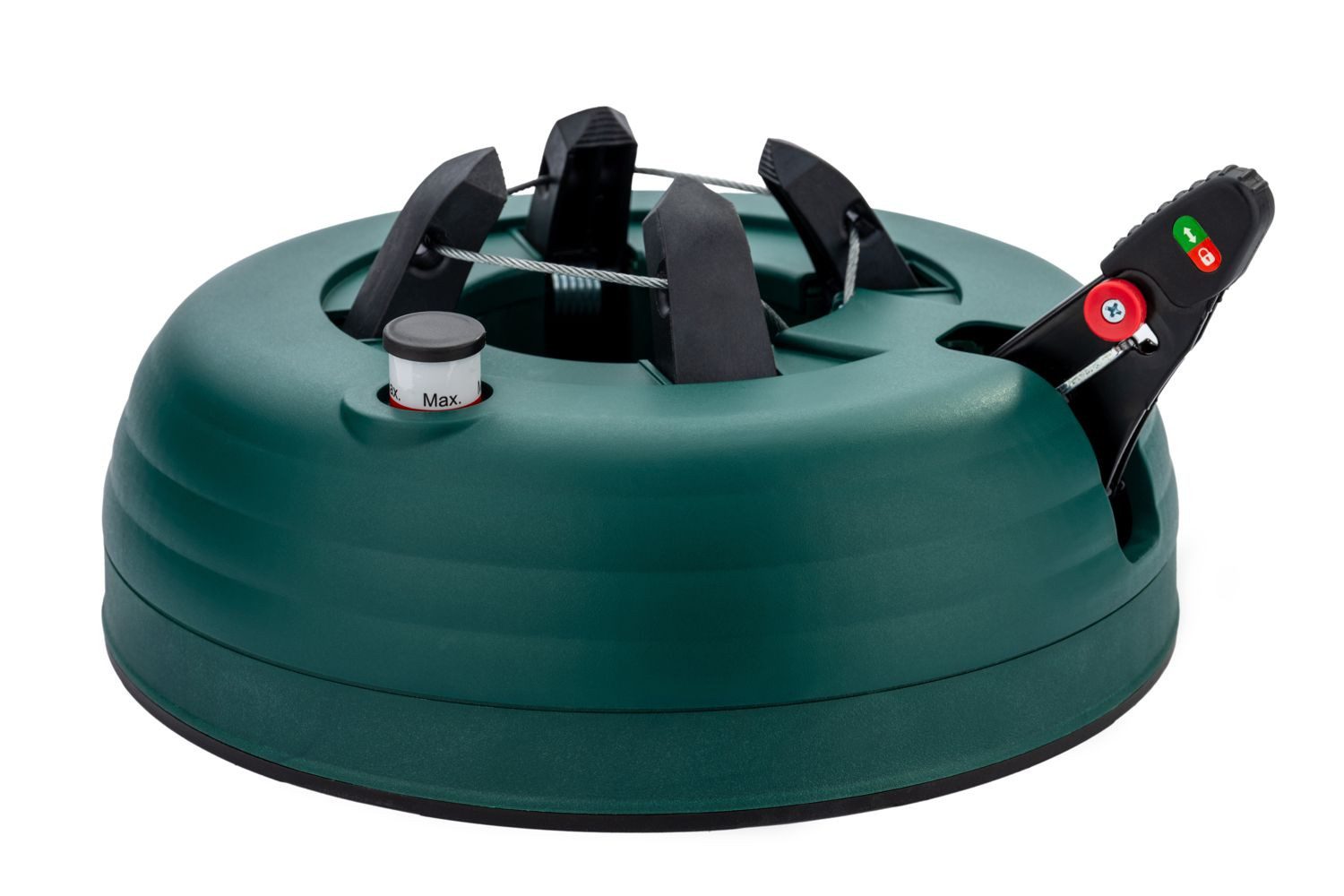 Dank der Einseilzugtechnik wird der Baum automatisch zentriert, während die Klemmvorrichtung durch einen praktischen Fußhebel einfach und sicher gespannt wird. Der integrierte Wassertank mit einer Kapazität von ca. 1,6 Litern verfügt über eine Wasserstandanzeige, die das rechtzeitige Nachfüllen erleichtert und das Austrocknen oder Nadeln des Baumes verhindert.