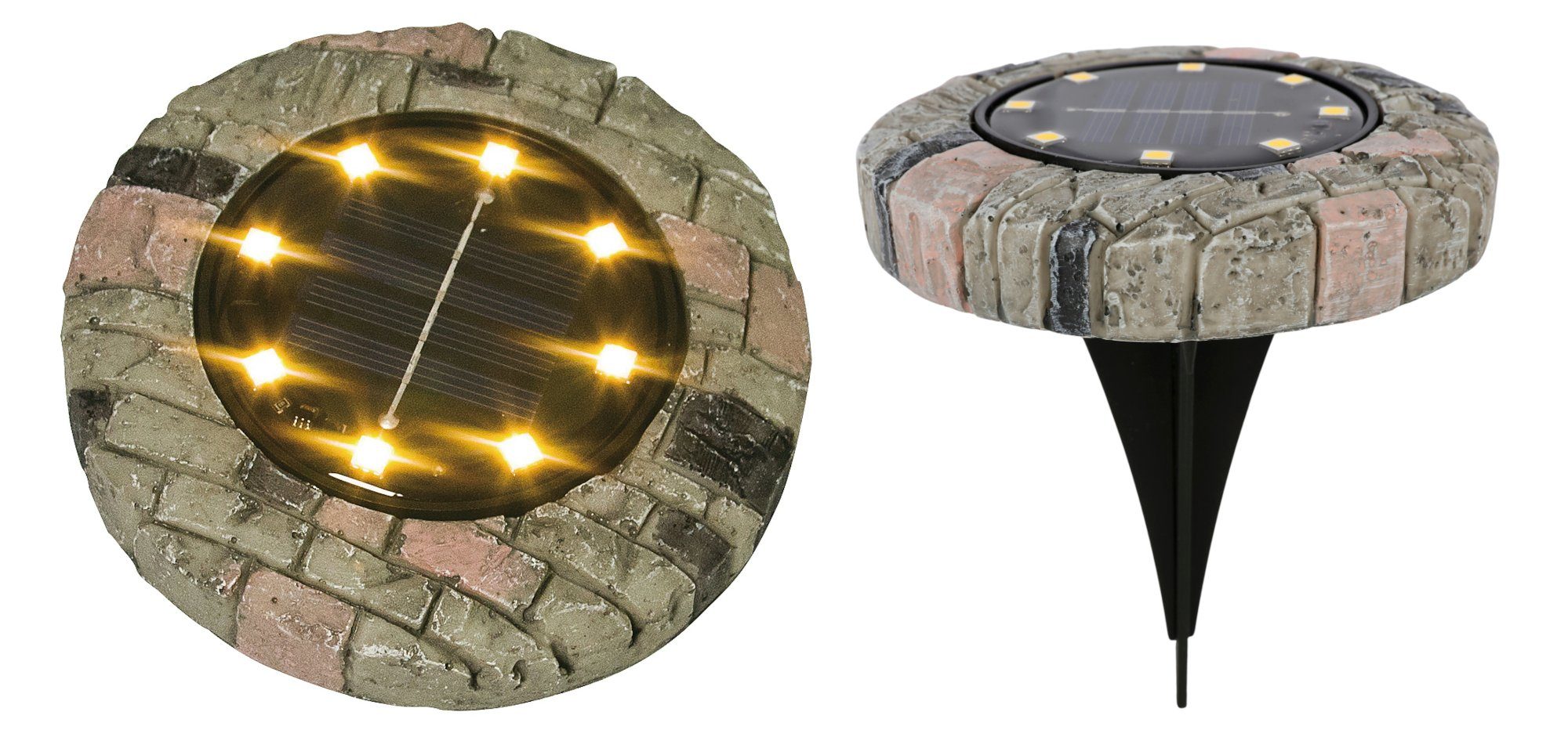 Setzen Sie mit diesem Solar-Bodenstecker aus Kunststoff in Steinoptik warmweiße Lichtakzente an Gehwegen im Garten, in Beeten oder in Blumenkübeln am Eingangsbereich. Mit dem Erdspieß wird der Bodenstecker kinderleicht in weiche Untergründe gesteckt und sorgt mit der naturgetreuen Steinoptik für einen schönen Hingucker. Die Solareinheit in der Mitte des Steckers versorgt den integrierten Akku mit Energie und über einen Helligkeitssensor schalten sich die acht LED-Lichter automatisch bei Dämmerung und Dunkelheit ein und erstrahlen in einem angenehmen, warmweißen Licht.