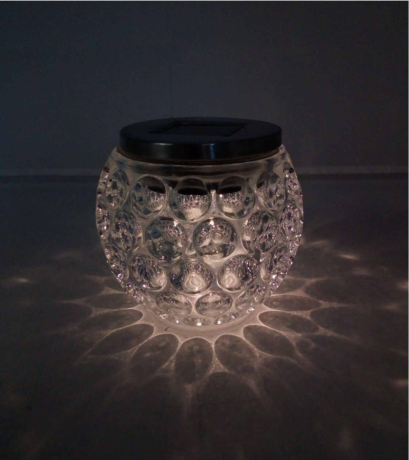 Solar-Glasleuchte mit LED-Licht Warmweiß.