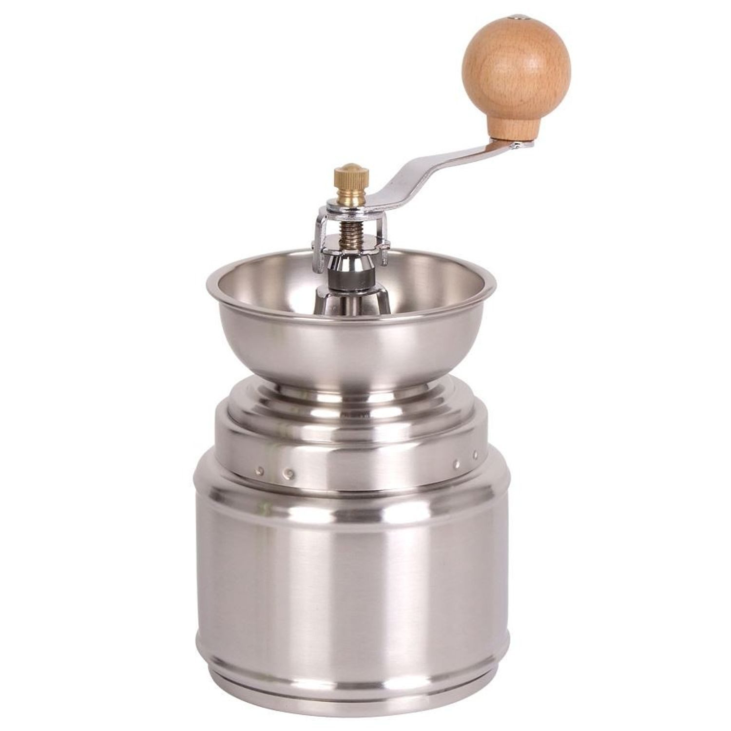 Diese manuelle Kaffeemühle bietet durch ihr Keramik-Kegelmahlwerk eine besonders schonende Aufbereitung der Kaffeebohnen. Der Mahlgrad ist von sehr fein (für den intensiven Espresso) bis grob (für den klassischen Filterkaffee) einstellbar. Das tolle, nostalgische Edelstahl-Design ist auch ein besonderer Blickfang auf der Küchen-Theke oder im offenen Regal.