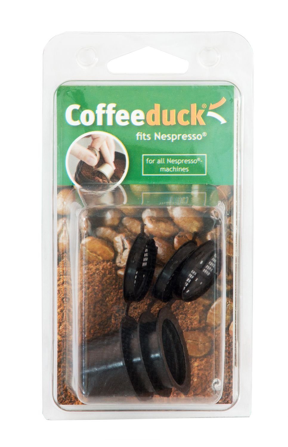 Kaffeeenten trinken umweltbewussten, eigenen Kaffee Werden auch Sie eine Kaffeeente und genießen Sie die grenzenlosen Vorteile, die Ihnen dieser Status bietet! Keine Kapseln mehr wegwerfen und eine enorme Kostenersparnis durch Ihren Lieblingskaffee, den Sie einfach in eine der drei Kapseln einfüllen. Im Folgenden die Bedienungsanweisung: Die Coffeeduck Espresso-Kapsel passt in das Nespresso-Gerät und bietet Ihnen einen hervorragenden Geschmack und eine ebensolche Creme-Schicht, wenn Sie die Espresso-Kapsel wie in der Gebrauchsanweisung beschrieben benutzen. Die Kaffeemischung muss gleichmäßig fein gemahlen sein, d. h., alle Körner müssen dieselbe Размер haben. Das Füllen der Kapseln erfordert etwas Geschick, aber mit ein bisschen Übung lernen Sie das schnell. Wenn Sie die Technik erst einmal beherrschen, wird das Ergebnis Sie angenehm überraschen. Maße pro Stück: Höhe: ca. 3 cm Durchmesser: ca. 3,5 cm Material: Kunststoff